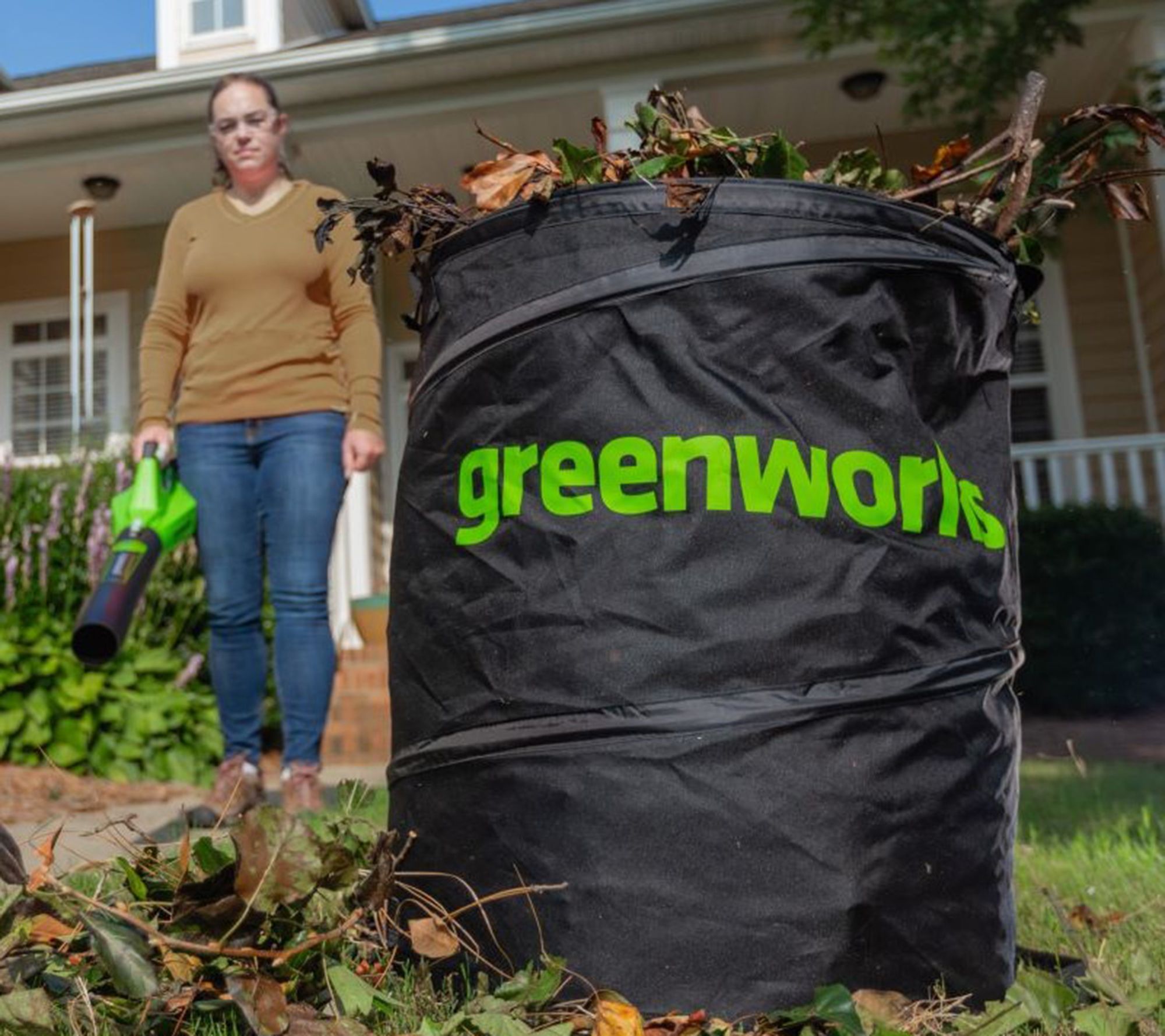 Simplify your yard cleanup! Pick up the lightweight, battery-operated Greenworks Powerall blower -- weighing in at only 3 lbs -- and quickly and easily clear leaves and debris from patios, beds, and driveways without being tethered to a cord. (Yes, you can actually make it to the mailbox!) Its comfy molded grip and variable-speed trigger help reduce fatigue, while the pop-open bag provides a convenient spot to collect leaves and clippings, so you won't have to grab a garbage bag. From Greenworks.