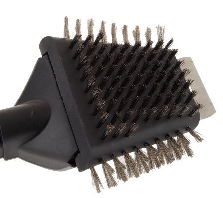 Post-grilling cleanup is a snap with this innovative trigger-powered brush. Just add water! The spray system releases a fine mist that quickly turns to steam upon contact with your warm grill, penetrating caked-on messes for quick and easy removal with the three-sided brush, even from hard-to-reach areas between the grates.