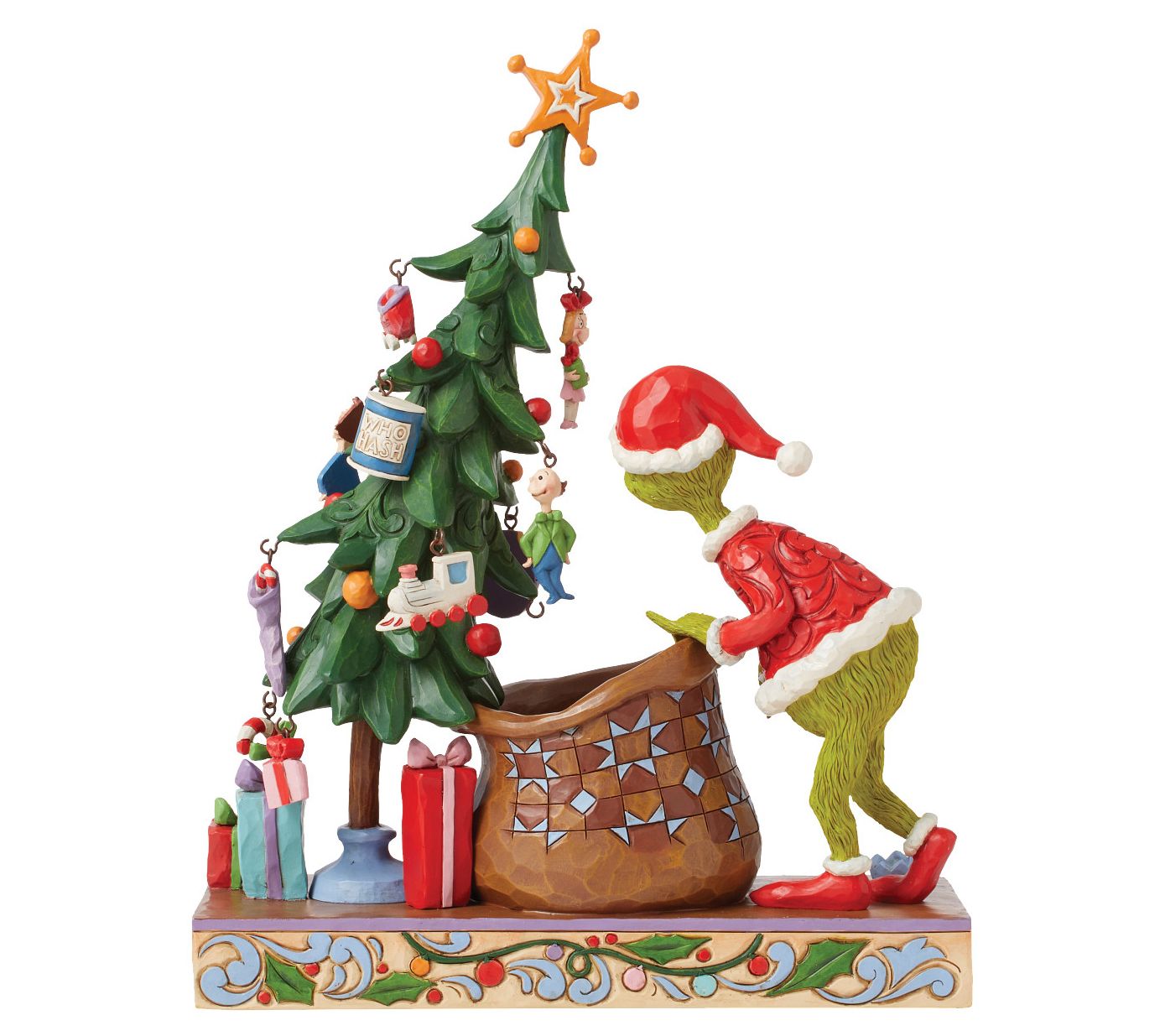 Celebrate the excitement of Christmas with a touch of whimsy using this Grinch countdown calendar. Perfect for Dr. Seuss fans, this charming piece features the Grinch in a festive Santa suit, presenting a bag of Whoville-inspired ornaments to adorn the included Christmas tree day by day. From Jim Shore.