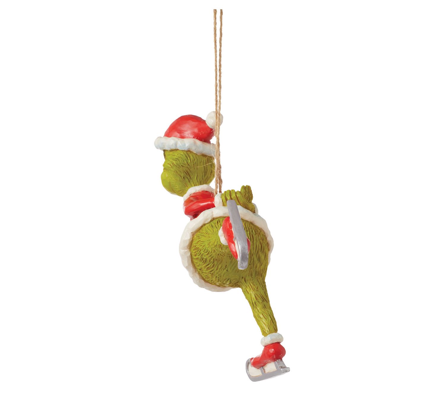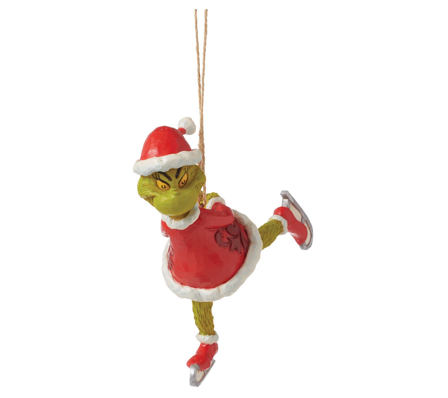 Capture the whimsical charm of the holidays with this playful ornament. This delightful piece showcases the Grinch, with a heart two sizes too big, effortlessly gliding across the ice on his skates, ready to spread joy and smiles from the branches of your Christmas tree. A perfect blend of style and holiday spirit, this ornament is a must-have for fans of the classic tale. From Jim Shore.