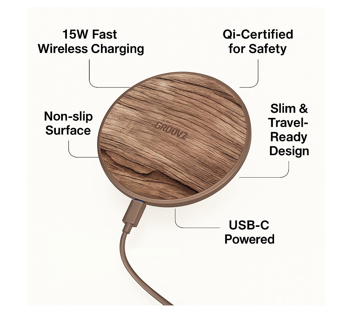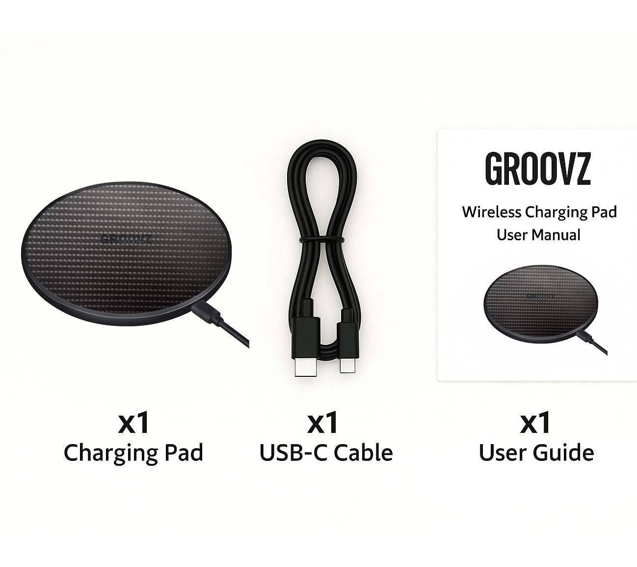 Groovz 15W Wireless Charging Pad with 40"L Cable
