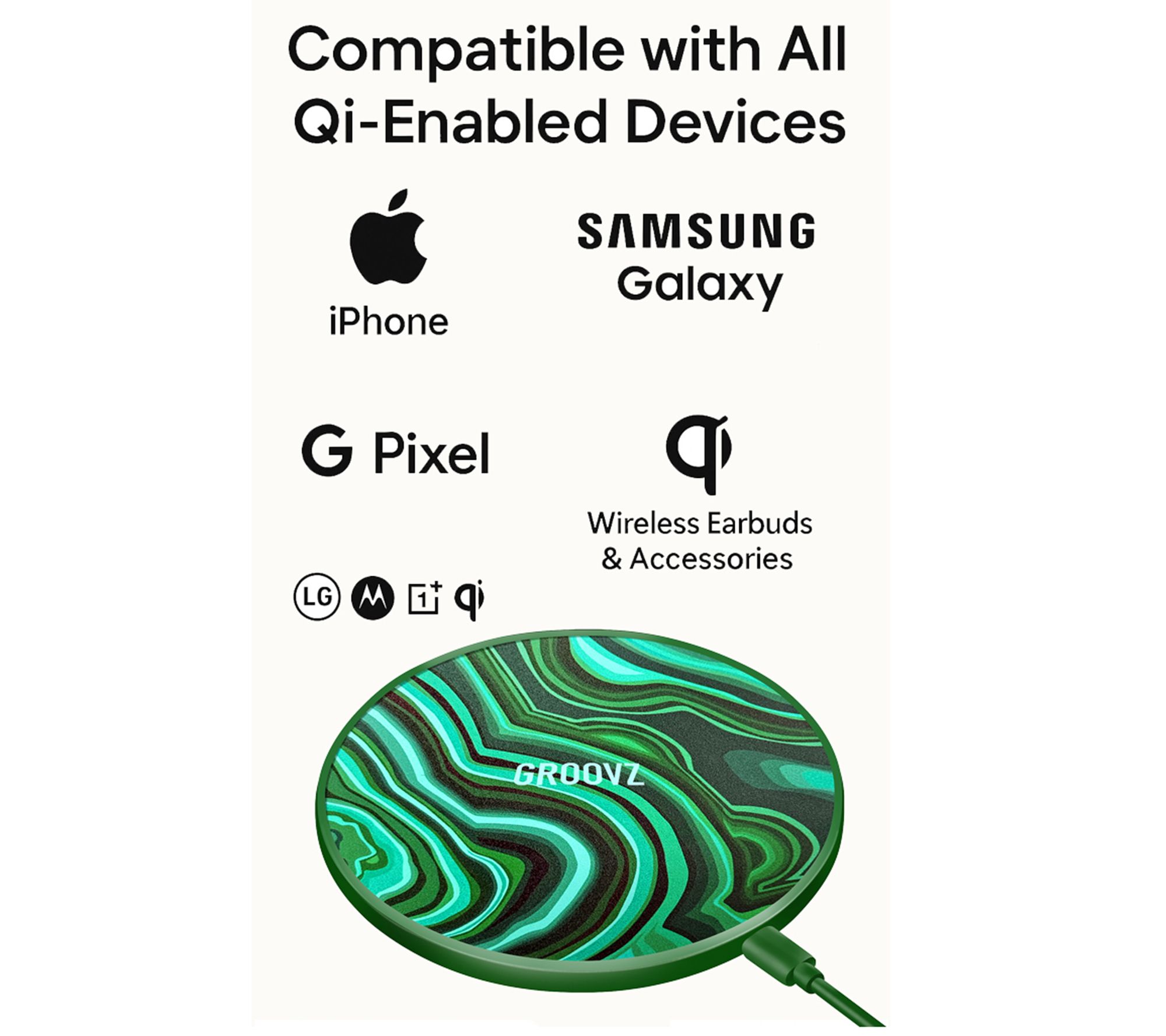 Just place it on the pad --- and power up! With the Groovz wireless charging pad, there's no need to fish around for charging cables (that always seem to walk). Just place your Qi-enabled device -- like earbuds or a smartphone -- on the sleek, compact pad and enjoy fast and easy charging. Company coming? Place one in the spare room for overnight guests -- they'll be so impressed! From Groovz.