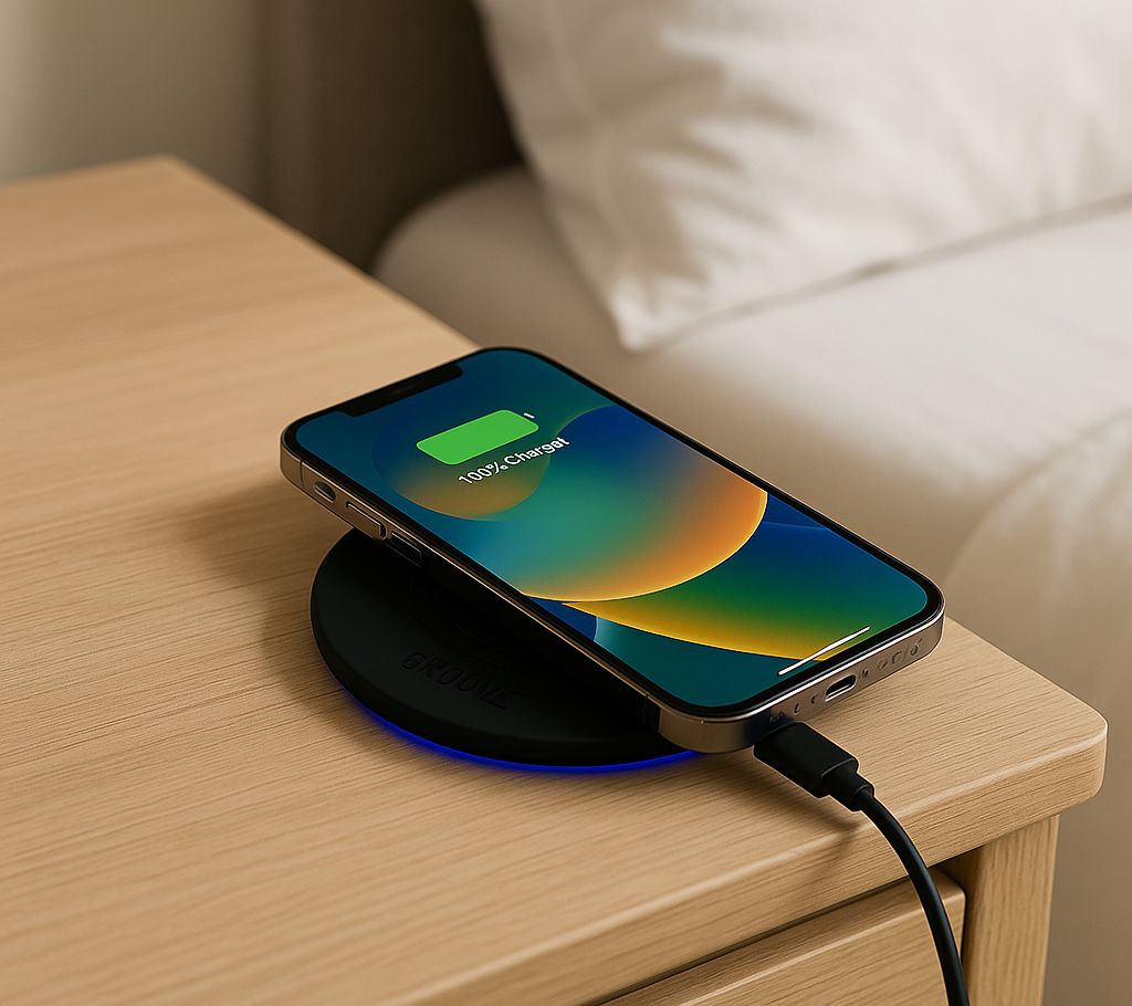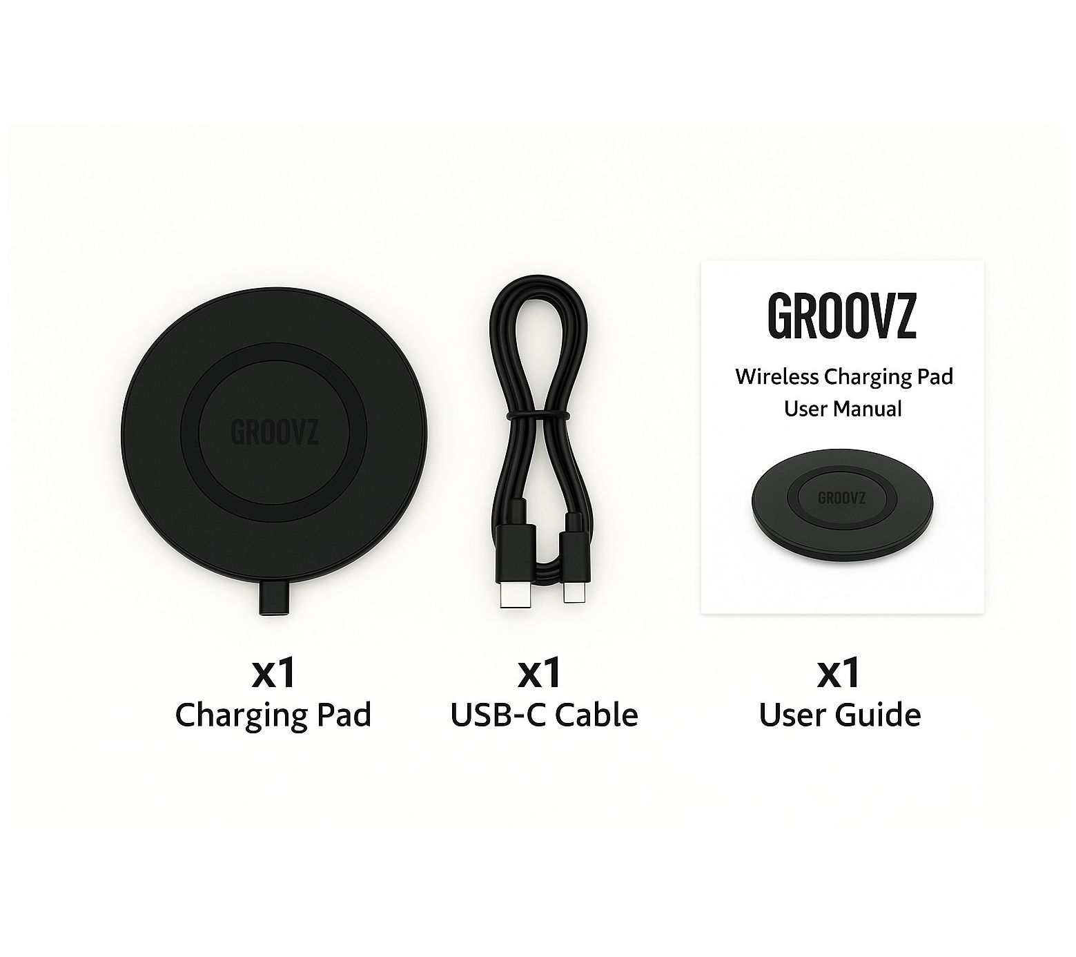 Just place it on the pad --- and power up! With the Groovz wireless charging pad, there's no need to fish around for charging cables (that always seem to walk). Just place your Qi-enabled device -- like earbuds or a smartphone -- on the sleek, compact pad and enjoy fast and easy charging. Company coming? Place one in the spare room for overnight guests -- they'll be so impressed! From Groovz.