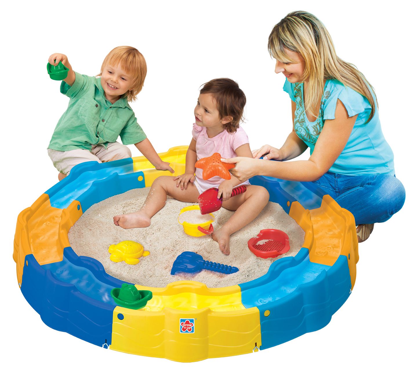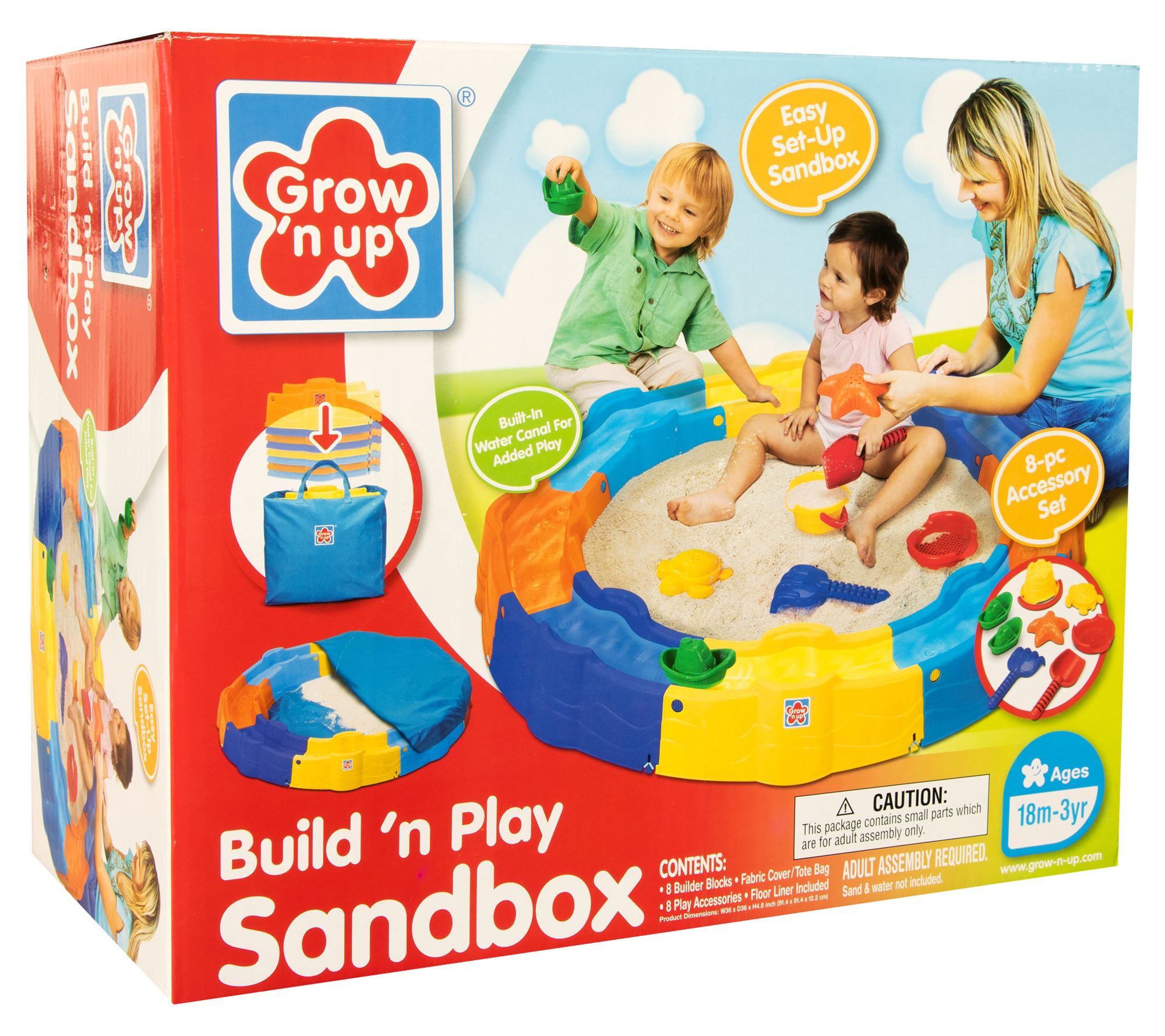 Prepare for all-day fun with the Build 'N Play Sandbox. The built-in water canal lets kids splash away and when they're done, simply break down the builder blocks and store them in the included tote bag. From Grow 'N Up.