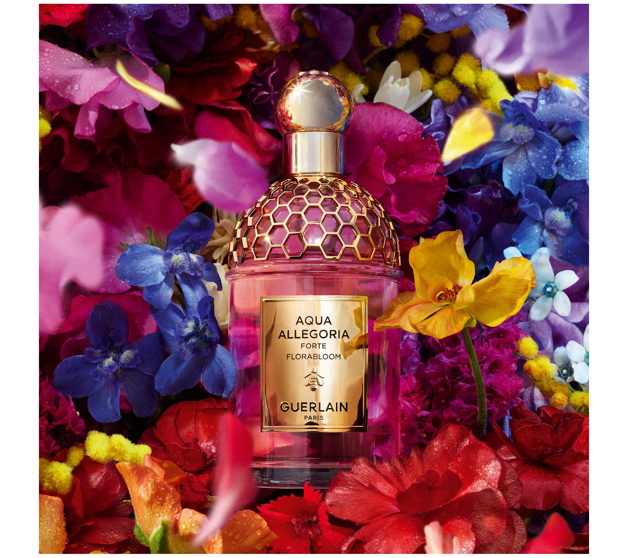 Discover Guerlain's Florabloom Forte Eau de Parfum, a fragrance showcasing irresistibly addictive tuberose at sunset, a Grasse Centifolia rose, and the warming notes of intensely powdery violet and iris, all amid an absolutely rich, multicolored bouquet underpinned with bold sandalwood and velvety moss. Inspired by a rare natural phenomenon known as a superbloom, this creation evokes the multicolored carpets of desert flowers that so spectacularly spring to life after heavy rainfall.
