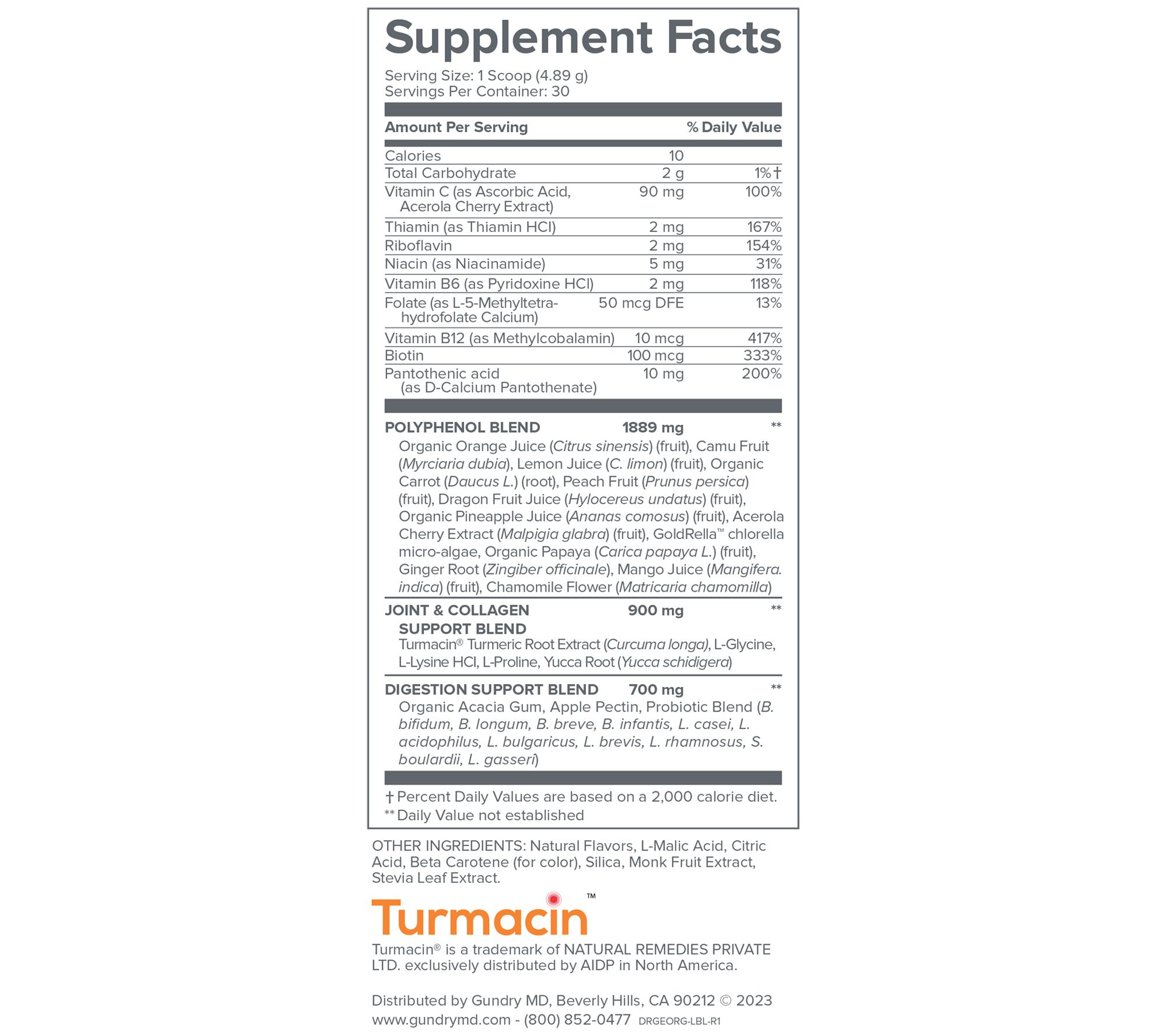 Get your fruits and veggies the easy way with this powdered drink mix formulated with polypyhenol- and antioxidant- containing extracts. From Gundry MD.