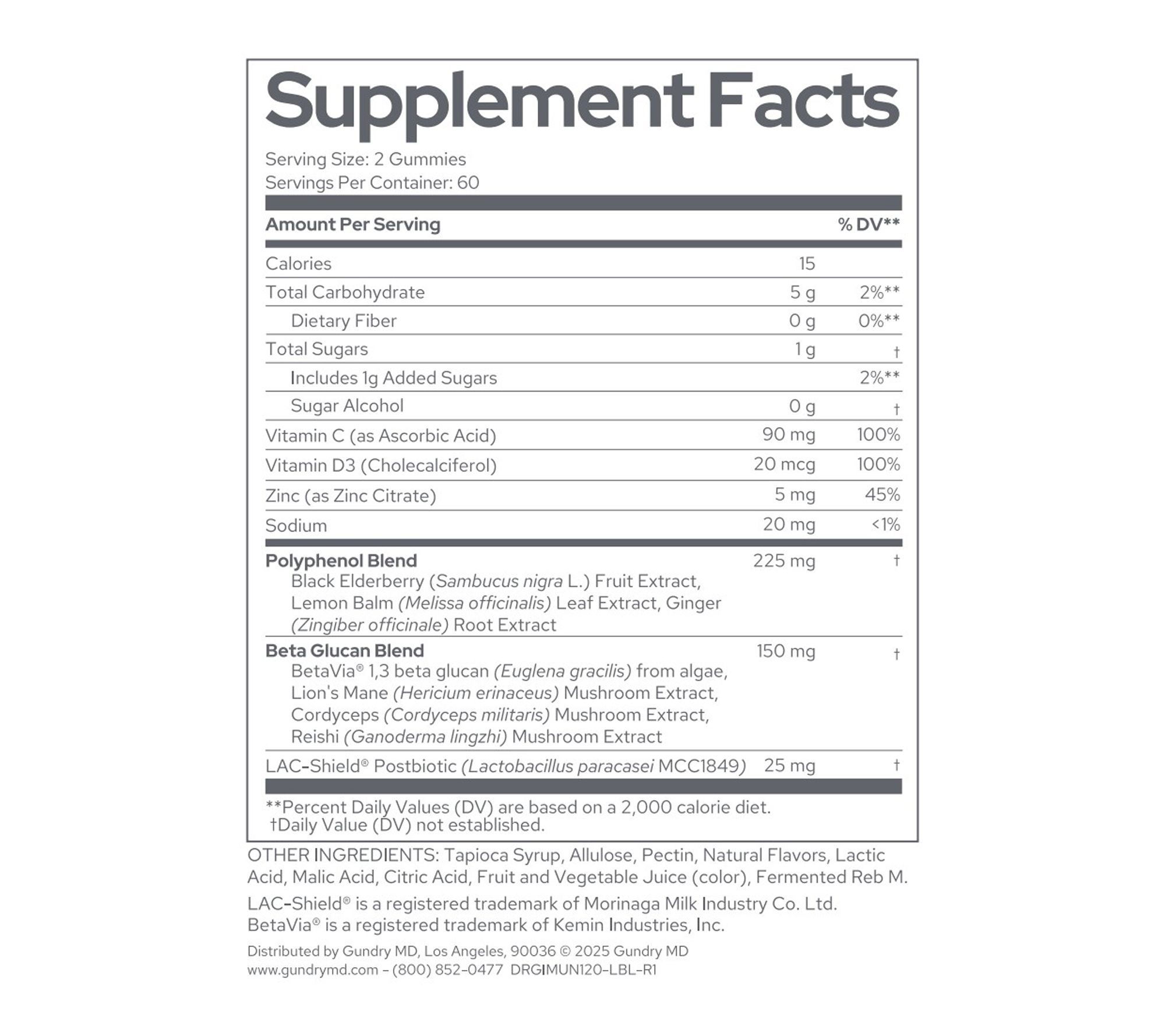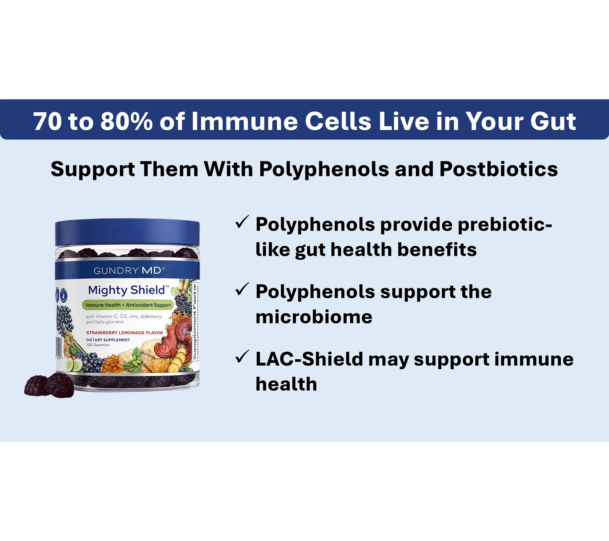 Contains 25 mg LAC-Shield® Postbiotic; LAC-Shield may support immune health