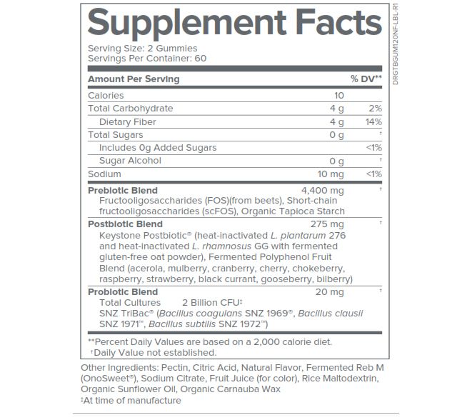 Gut check. Did you know the gut microbiome produces a wide variety of substances that are important for gut health? In fact, over the last several years, probiotics have become a popular approach to supporting your gut health and are being recommended more and more frequently by medical professionals (like Dr. Gundry!). What's more, along with triple-action probiotics, they also contain dietary fiber which supports heart and digestive health (and -- bonus! -- helps keep you feeling full). Plus, there's no added sugar or synthetic colors. Consider these great-tasting gummies a super-convenient and palatable way to easily incorporate probiotics into your day! From Gundry MD.