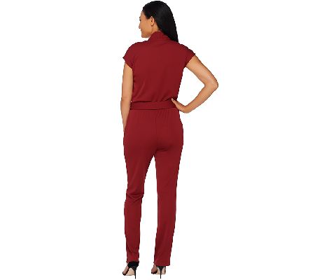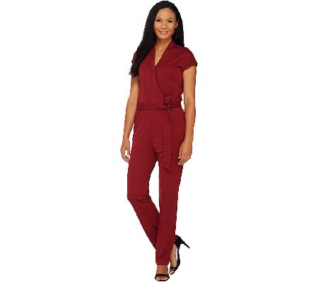 Chic style is all wrapped up with this H by Halston petite knit jumpsuit. A flattering V-neckline and tie waist flatter any silhouette. Picking the perfect outfit is done for you--just add your favorite accessories and head out the door. From H by Halston.