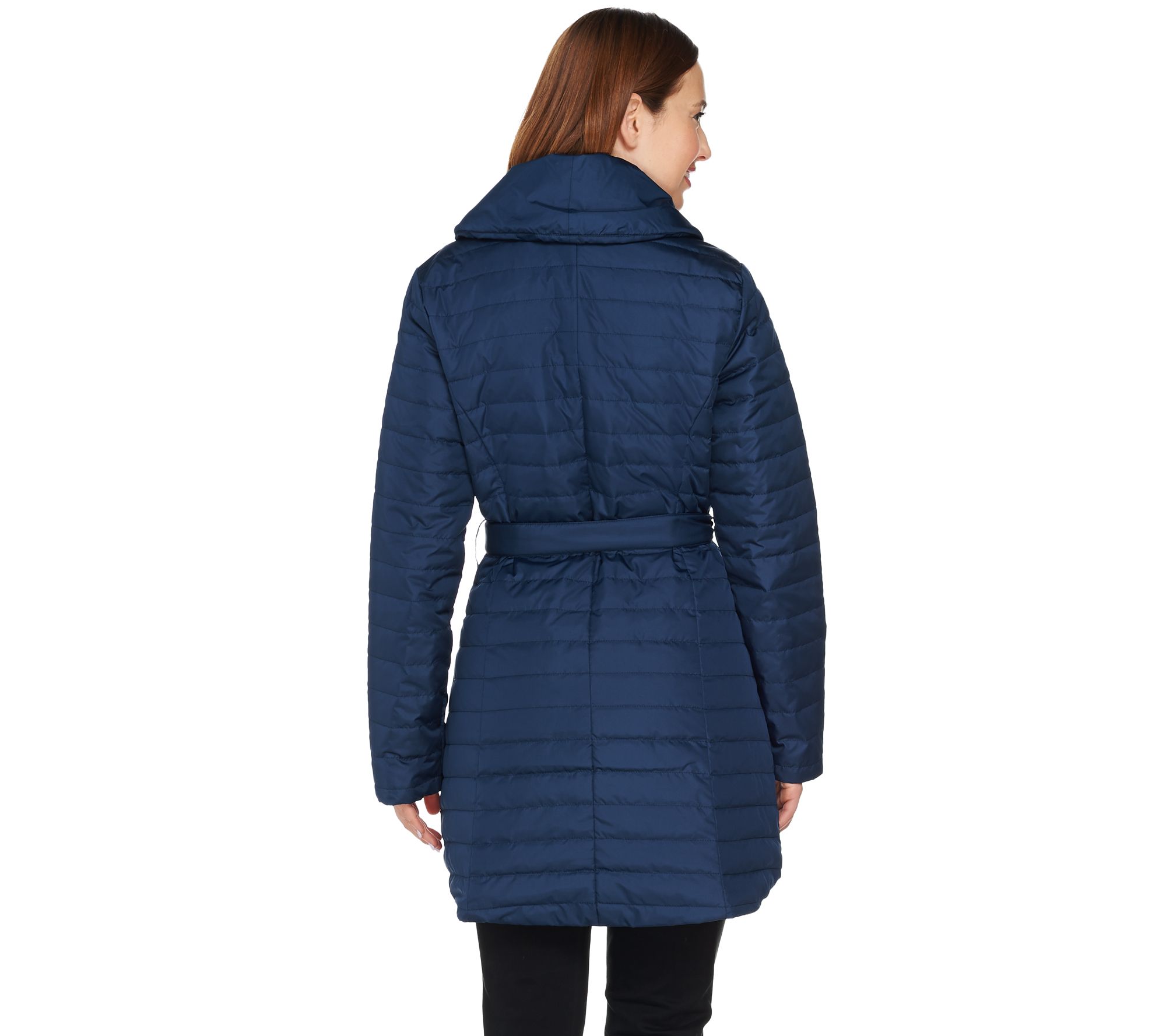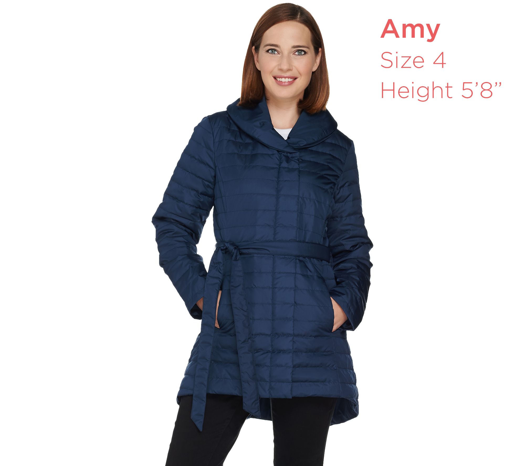 Conquer the cold with this chic coat from H by Halston. The water-repellent shell, shawl collar, and down fill come together to keep you toasty warm and amazingly dry during winter's worst weather. A slight hi-low hem and side seam pockets add a modern touch to the quilted design. From H by Halston.