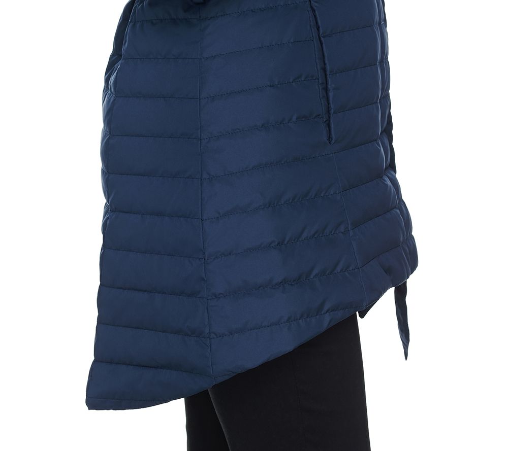 Features: shawl collar, long sleeves, self belt, side seam pockets, slight hi-low hem, water repellant