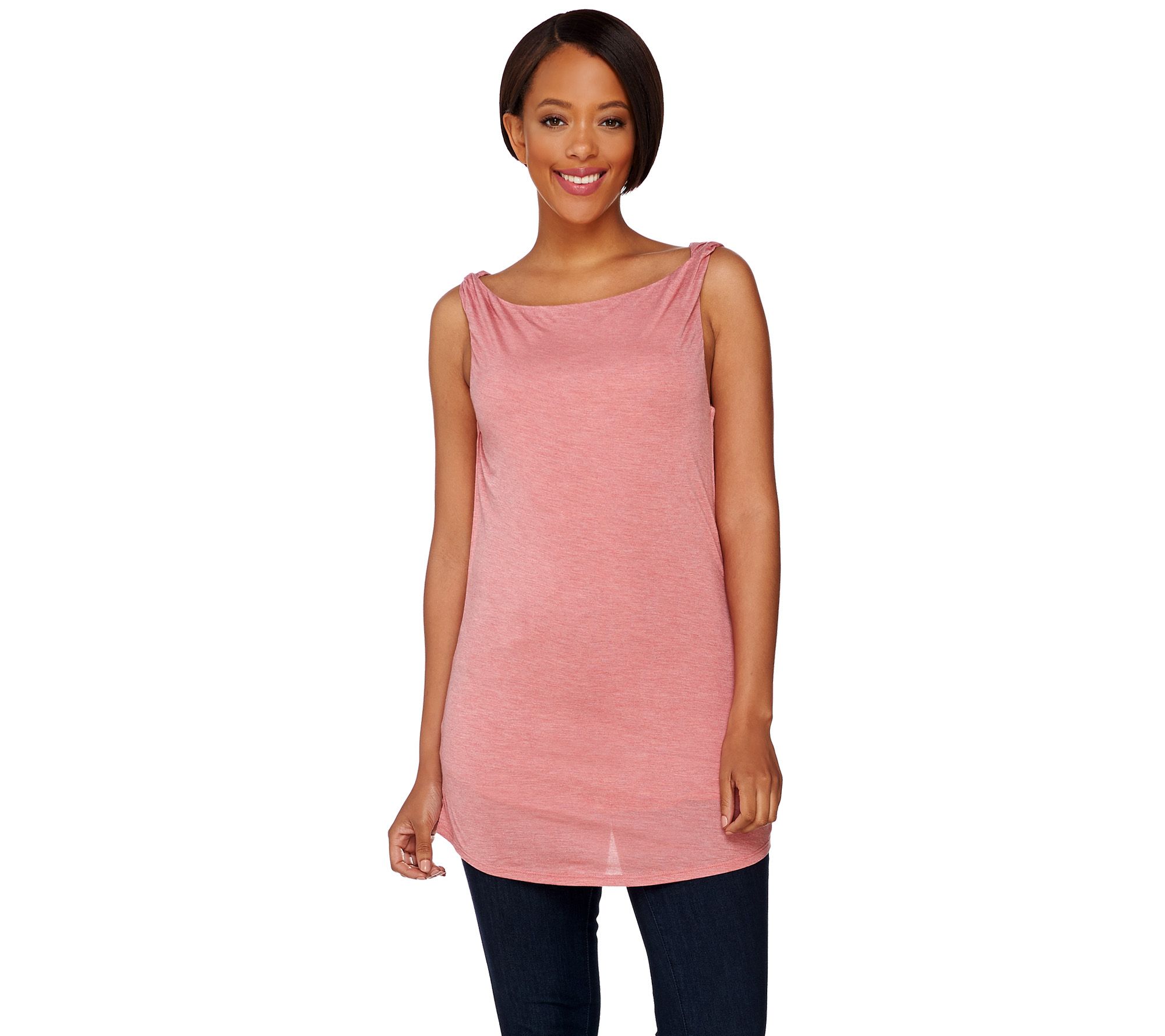 You work hard to shape your shoulders. Show them off in a sleeveless style that frames your face and accents your arms with twists at the shoulders. From H by Halston.