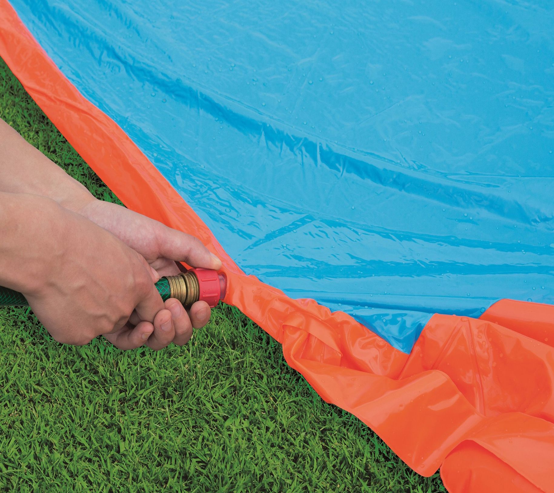 Set your kids up for a wet and wild afternoon with this exhilarating water slide. Two lanes create a sweet race course, while the built-in sprayers keep the lanes slick and speedy. From H2Ogo!.