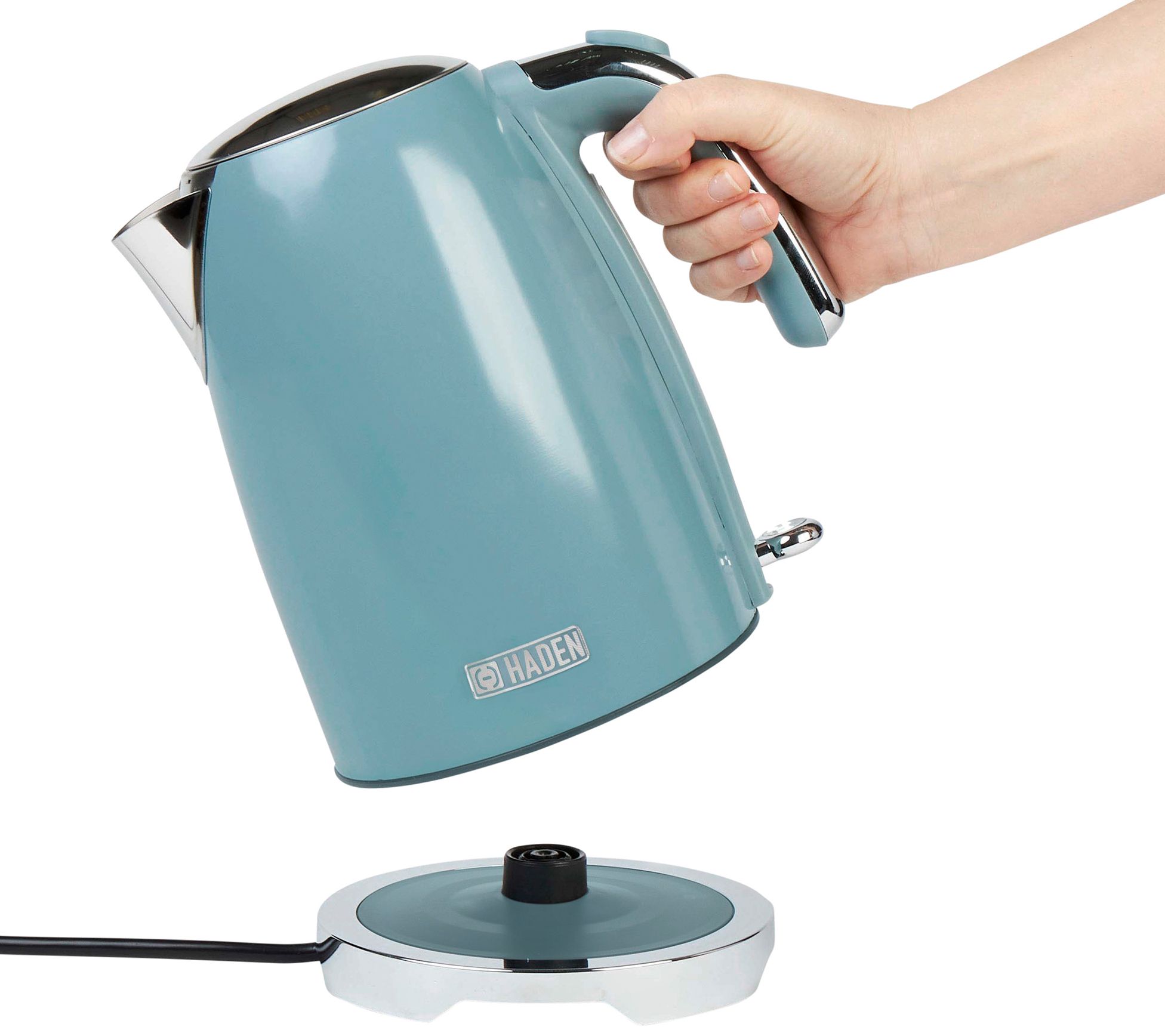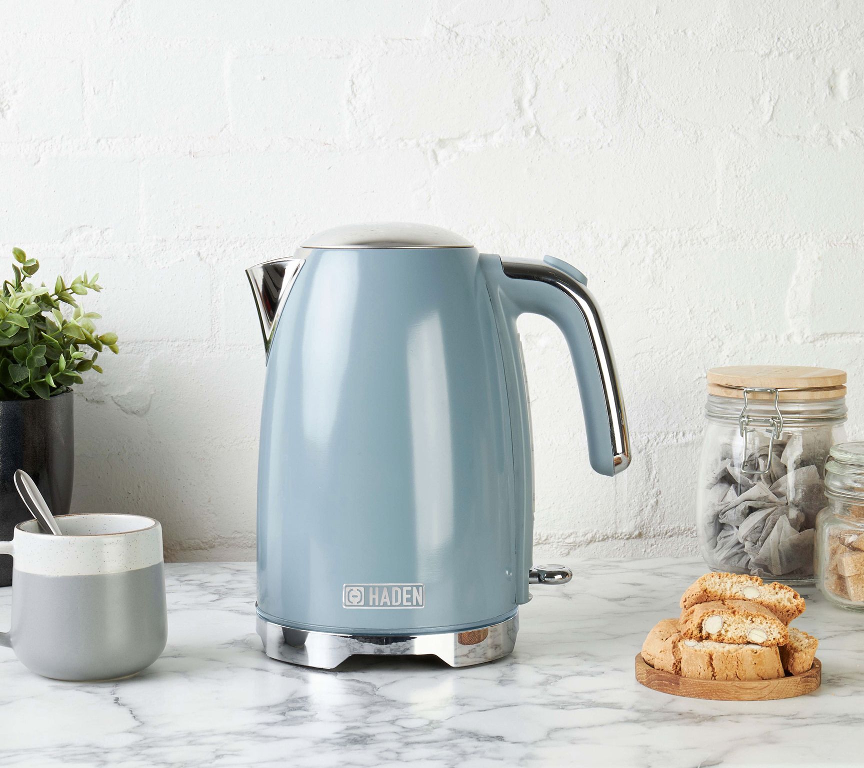 A dreamy kitchen appliance inspired by a quintessential English seaside town, the Brighton is an electric kettle that offers easy controls, a soft blue finish, and style that takes teatime to new style heights. From Haden.