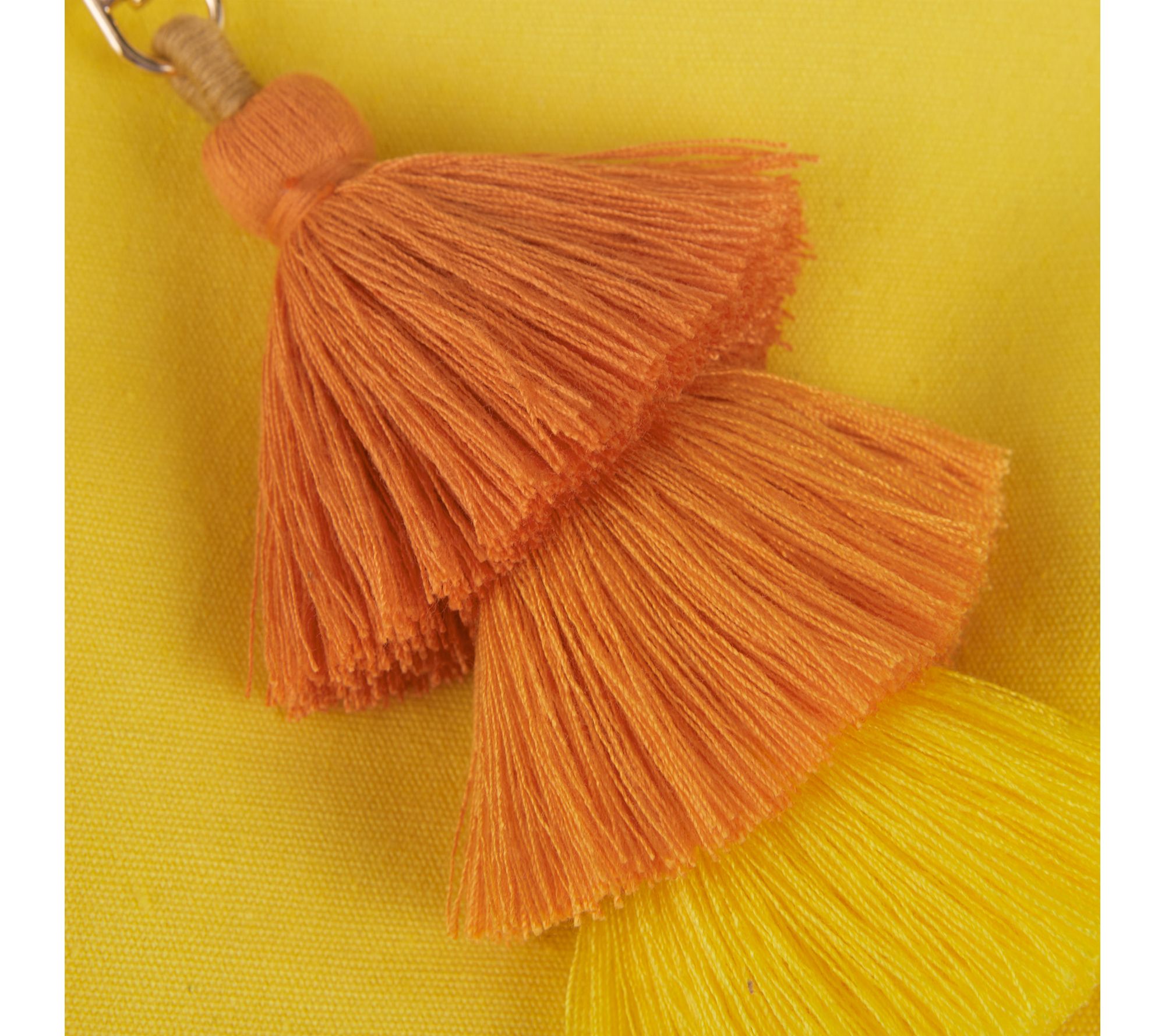 • Zip top closure; detachable tiered ombre tassel charm; rose goldtone hardware