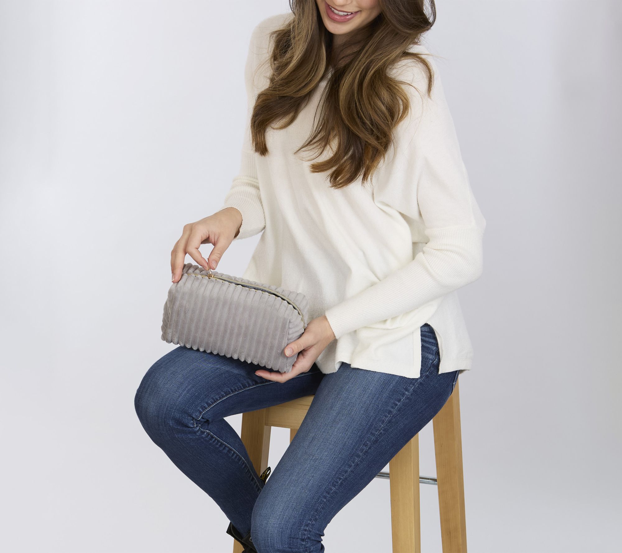 The Hadley Wren Corduroy Cosmetic Zip Pouch combines form and function with its structured shape and plush wide wale corduroy -- offering rich texture and visual interest. The structured silhouette makes it easy to see and access essentials, while the fully lined interior adds protection and polish. It's a stylish and practical choice for travel, daily organization, or gift-giving. From Hadley Wren.