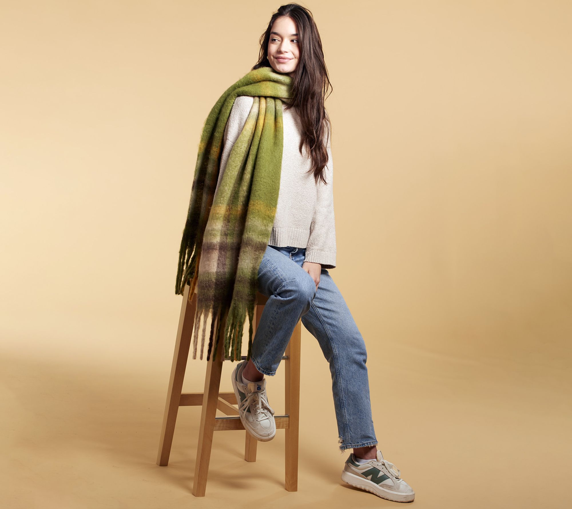 • Plaid with approximately 7" fringe
