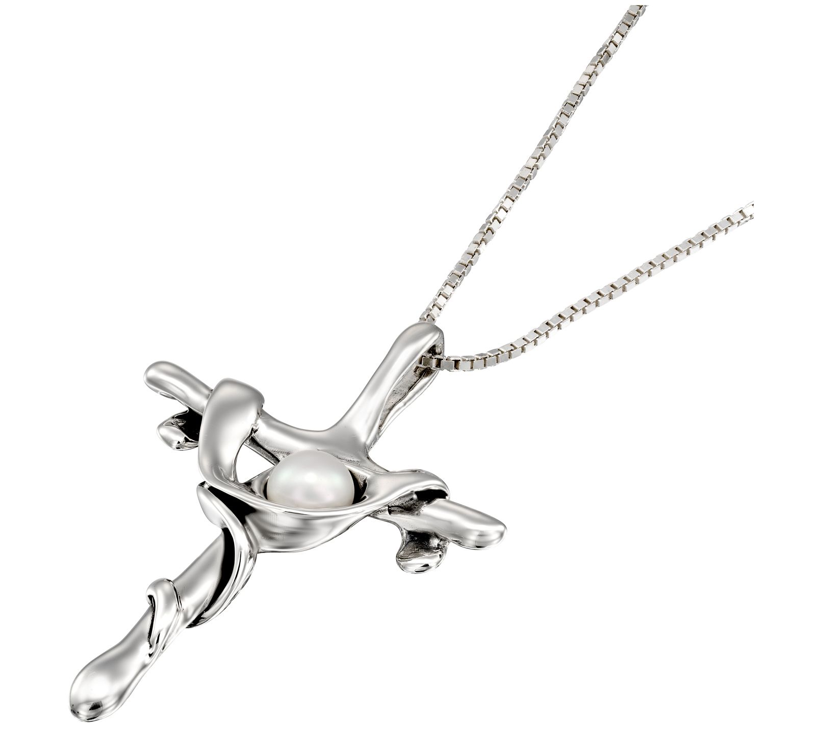 Let the symbolism of this cross pendant lift you up! A cultured freshwater pearl adds to the divine design. From Hagit.