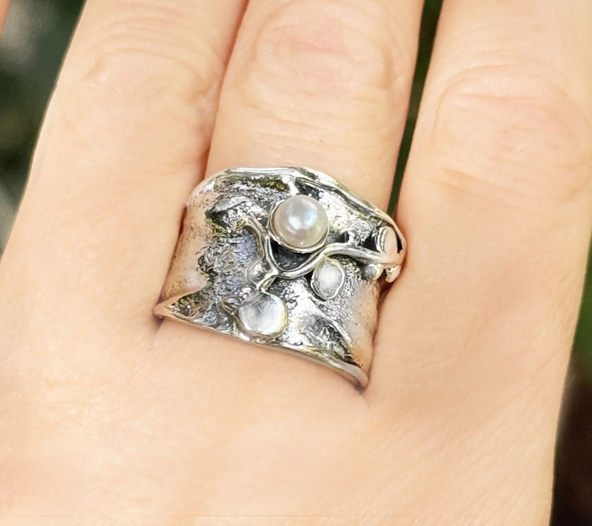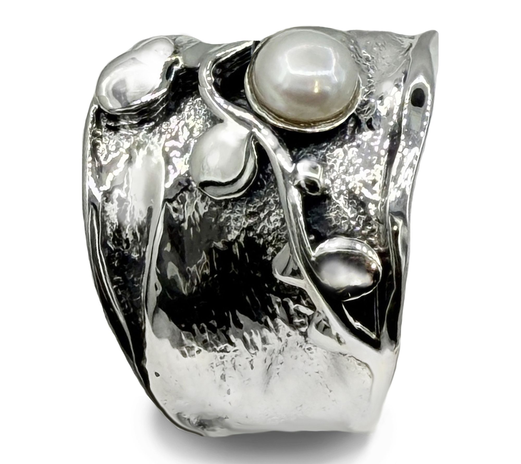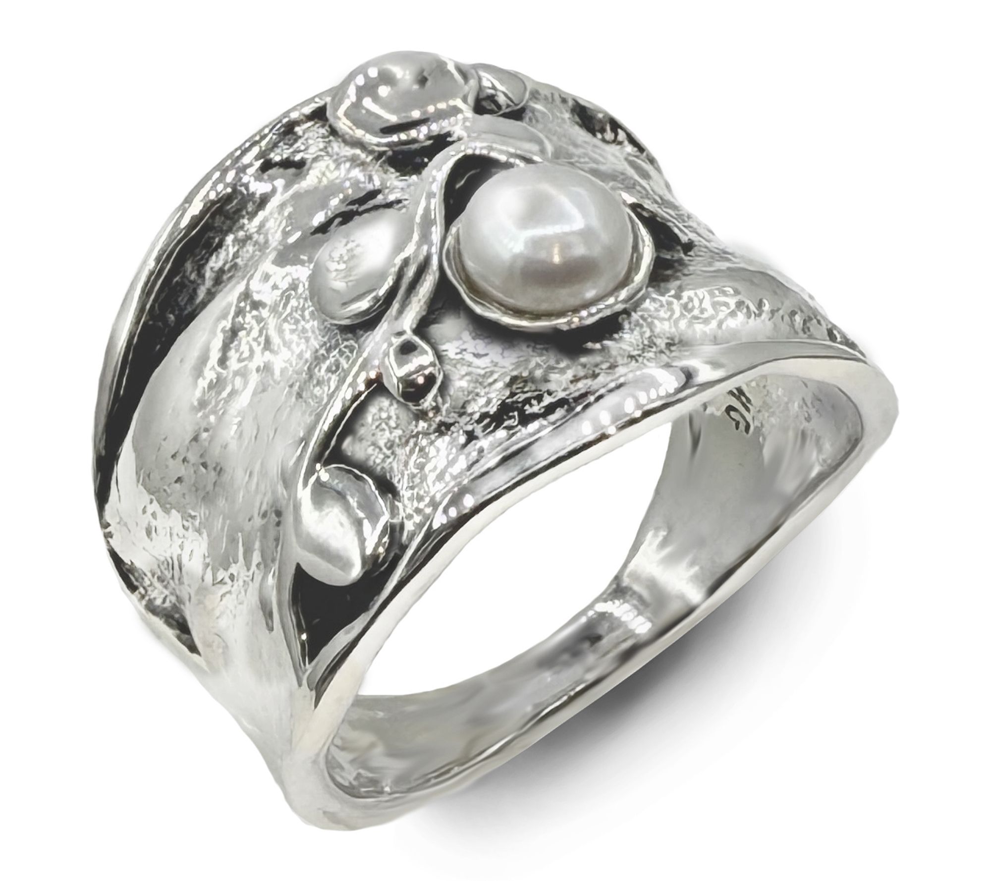 Hagit Sterling Silver Cultured Pearl Graceful 'Ivy' Ring