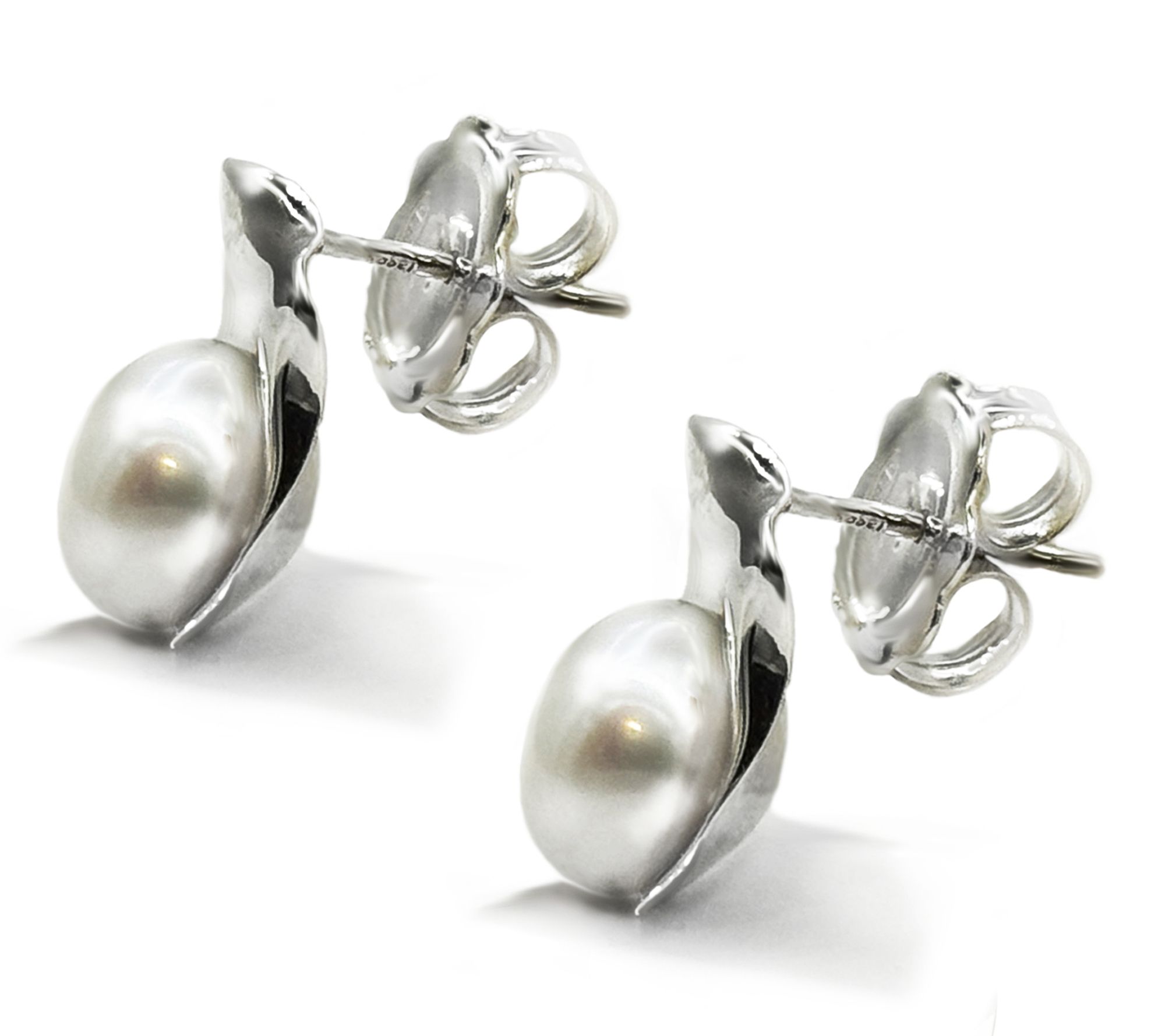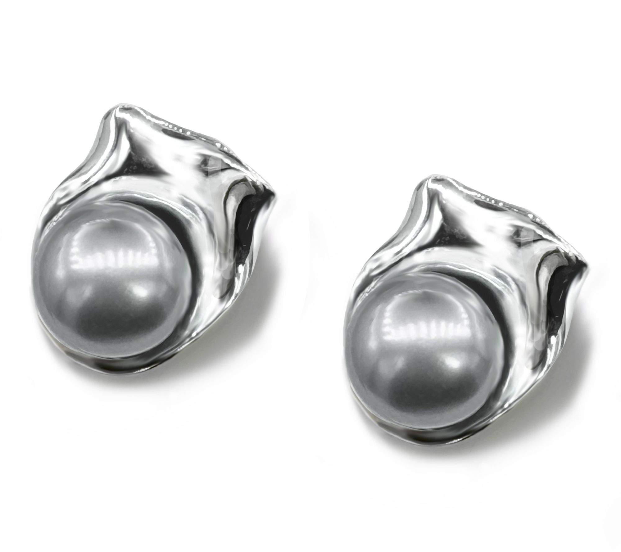 Slip on these stud earrings to add a luminous touch to your every look -- they frame your face with the alluring glow of large cultured freshwater pearls, artfully nestled in reflective pools of sterling silver. Designed in a contemporary style with an eye-catching finish, they easily transition from everyday elegance to special occasions. From Hagit.