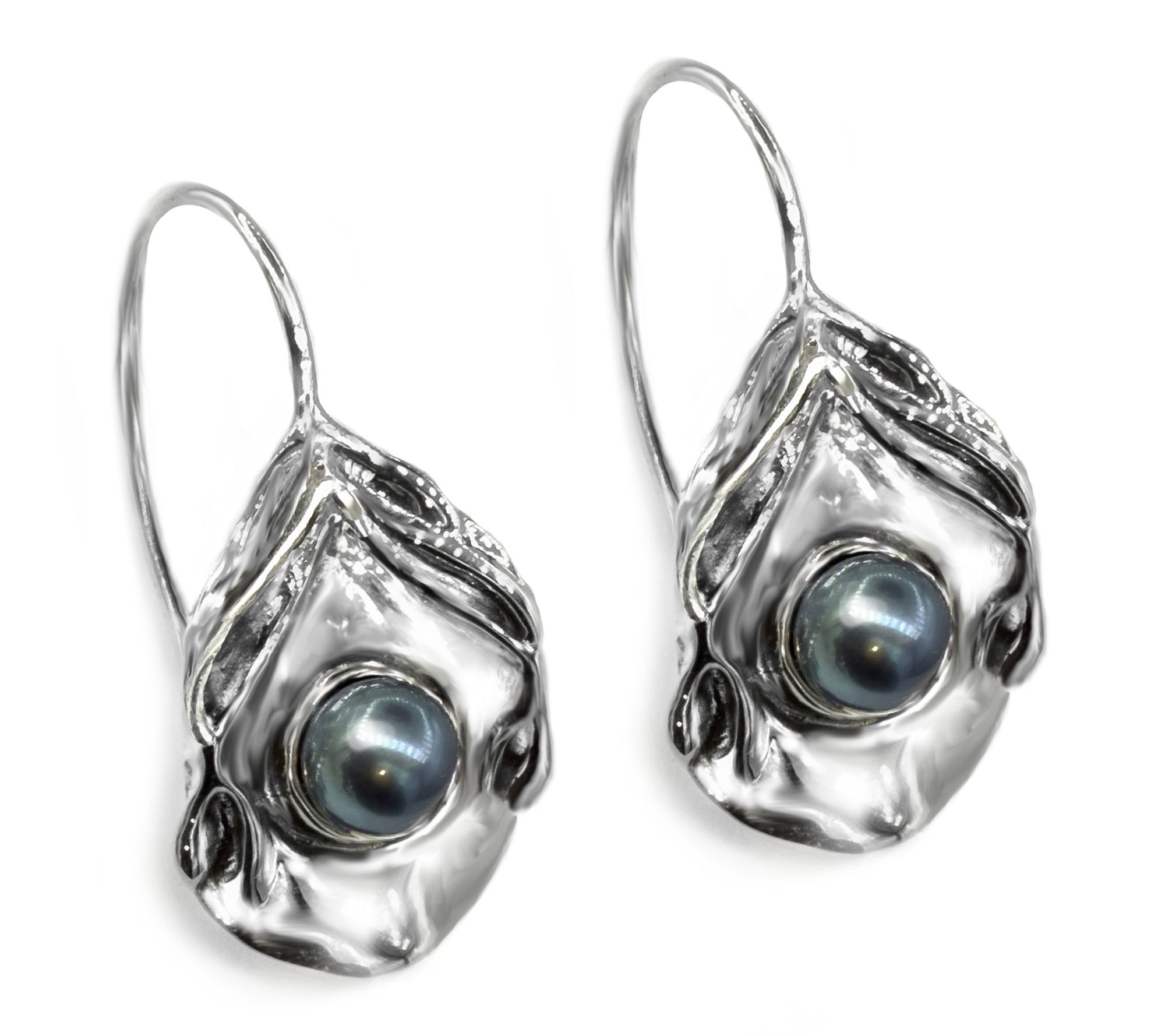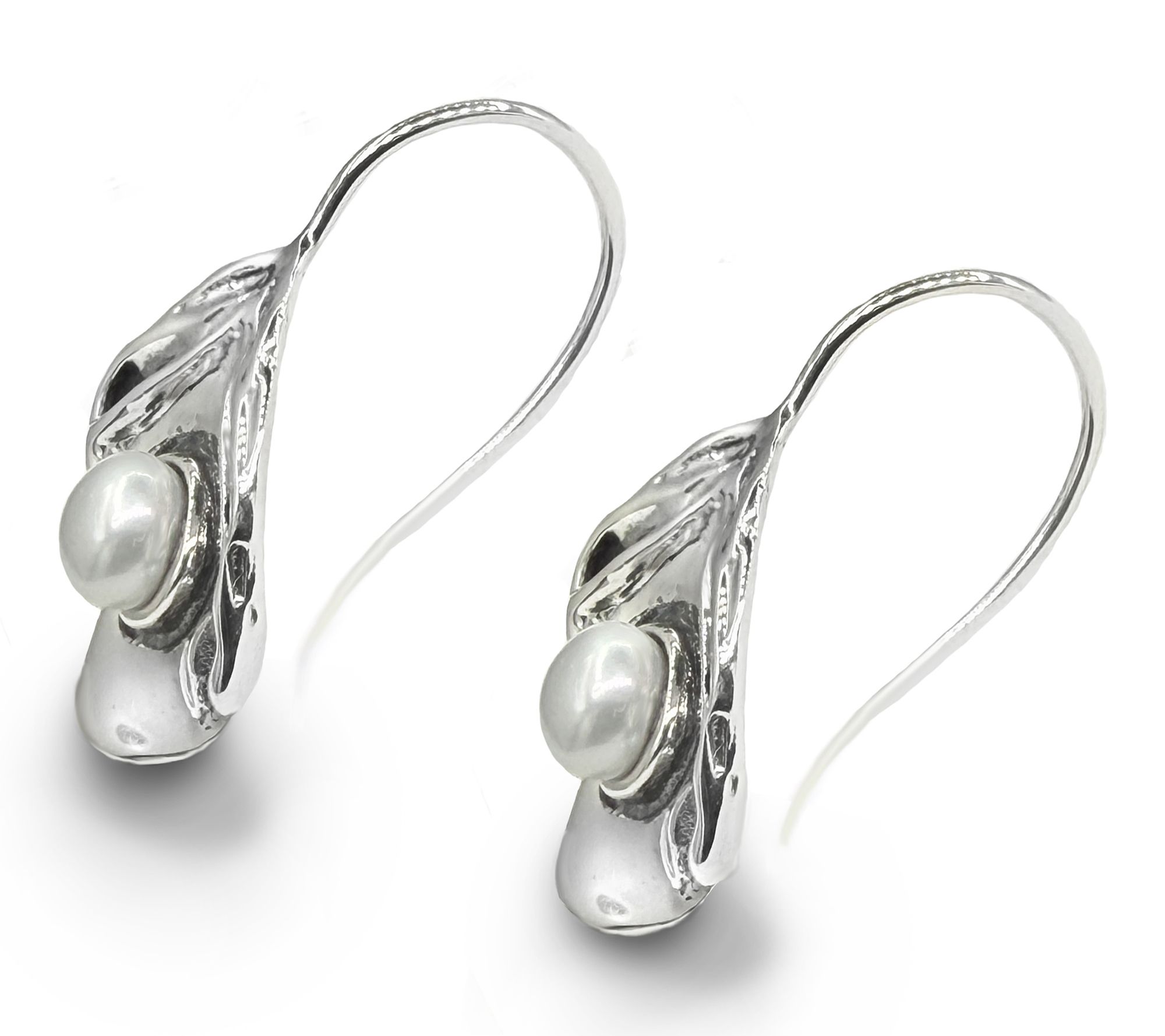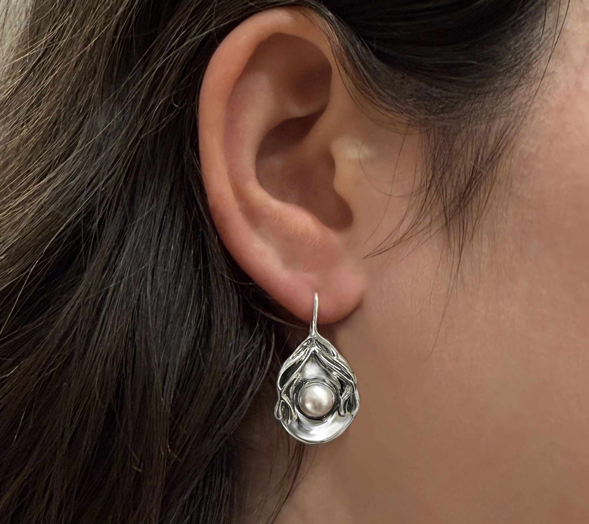 Slip on these sterling silver dangle earrings to channel the tranquil allure of the ocean, where luminous cultured freshwater pearls nestle in sculpted seashell-inspired settings. The gentle, undulating design brings movement to every glance, making them a standout for both everyday adventures and special moments by the water's edge. From Hagit.