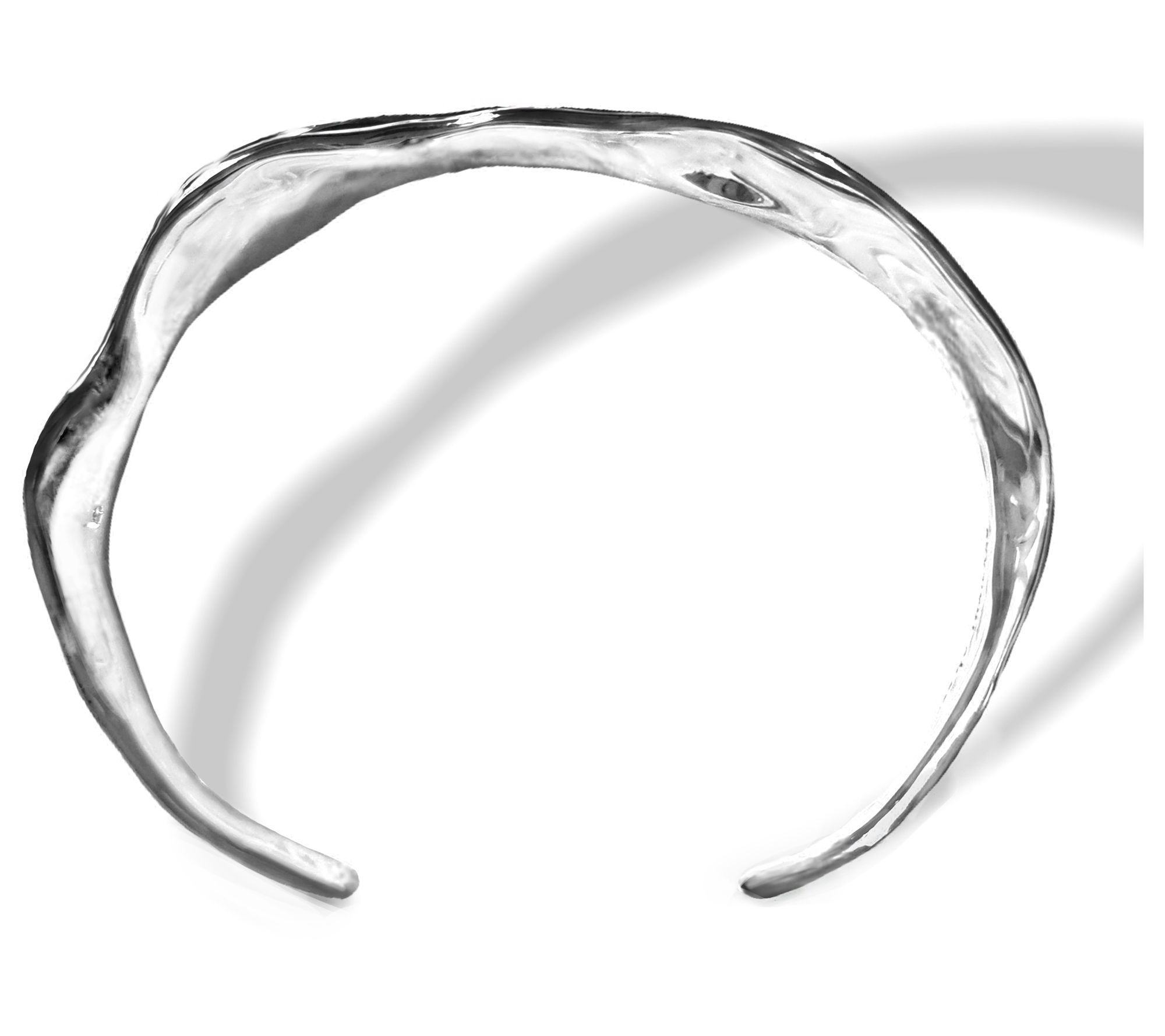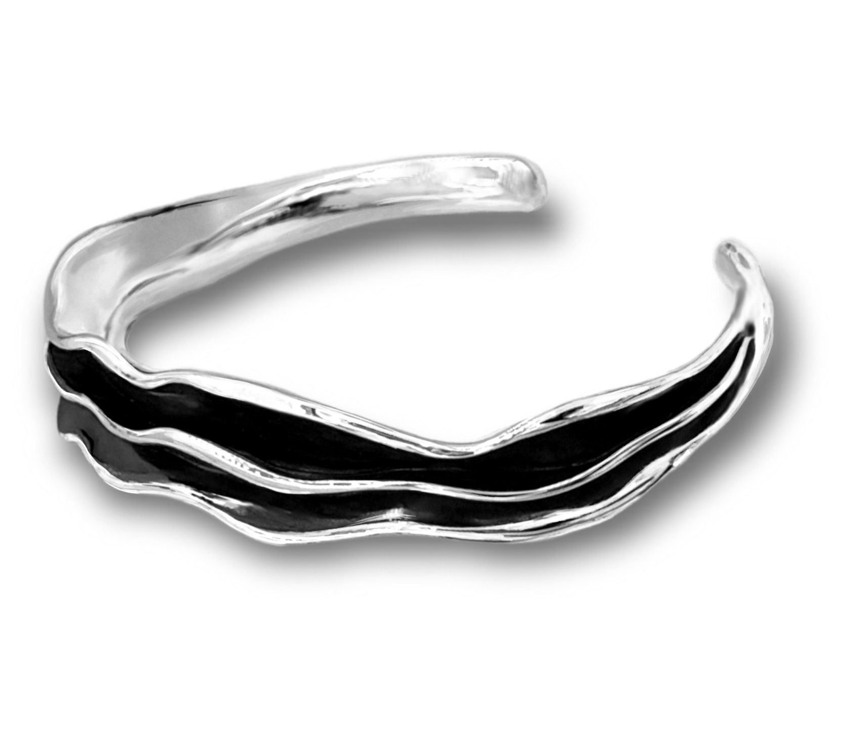• Cuff bracelet with deeply oxidized waves and a polished silver lip
