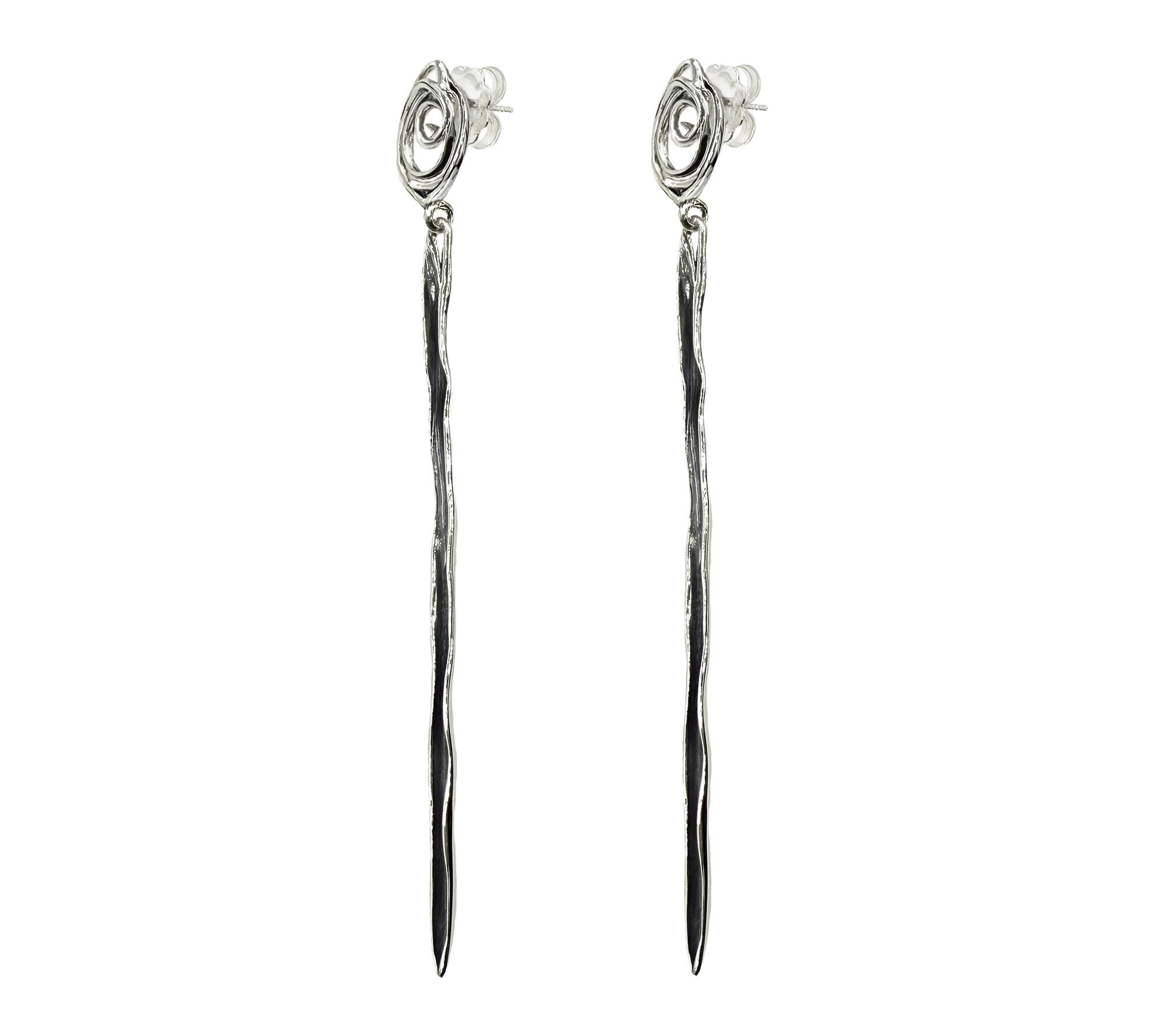 Whether you're heading out for an evening soiree or adding flair to everyday style, these sterling silver elongated earrings turn every moment into a celebration. Their dramatic textures and graceful movement catch the eye, creating an elegant statement with every wear. From Hagit.