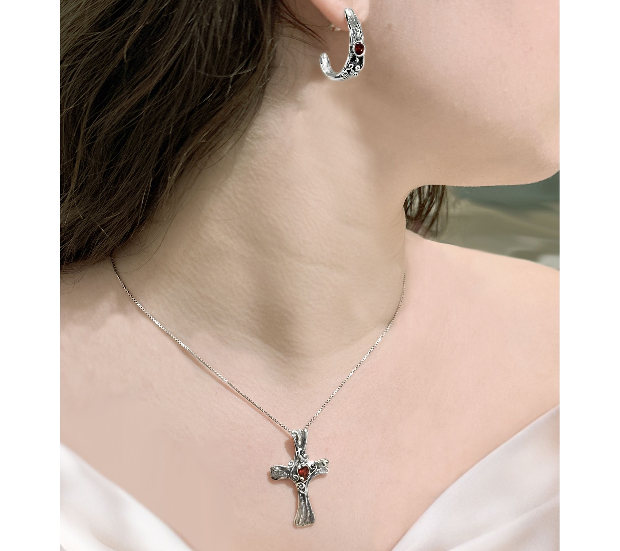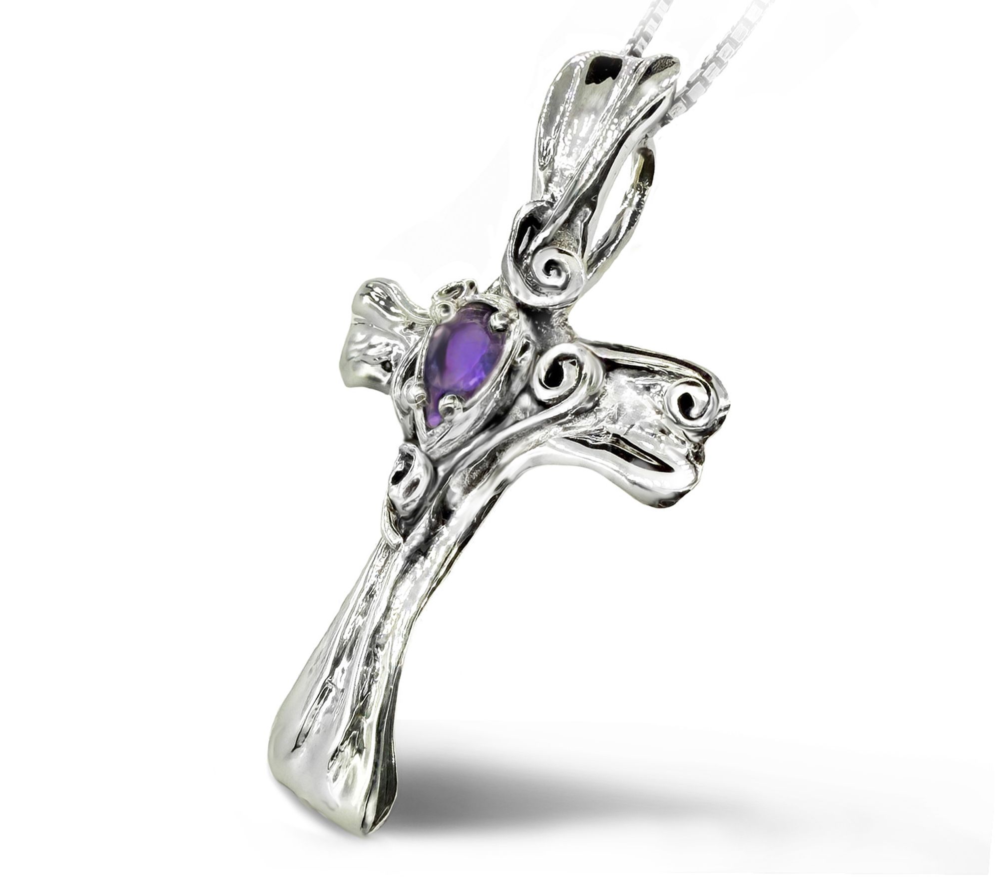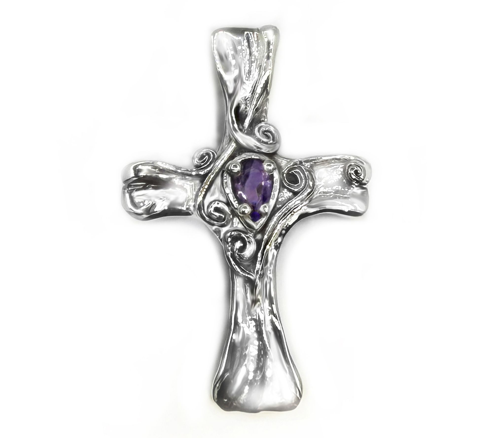 Whether it's a heartfelt gift or a meaningful addition to your own collection, this cross pendant brings a touch of inspiration and luminous color to every moment. The sterling silver is artfully embroidered with intricate detailing, while a glowing pear-shaped gemstone shimmers at its heart, making it easy to elevate both casual and dressy looks. From Hagit.
