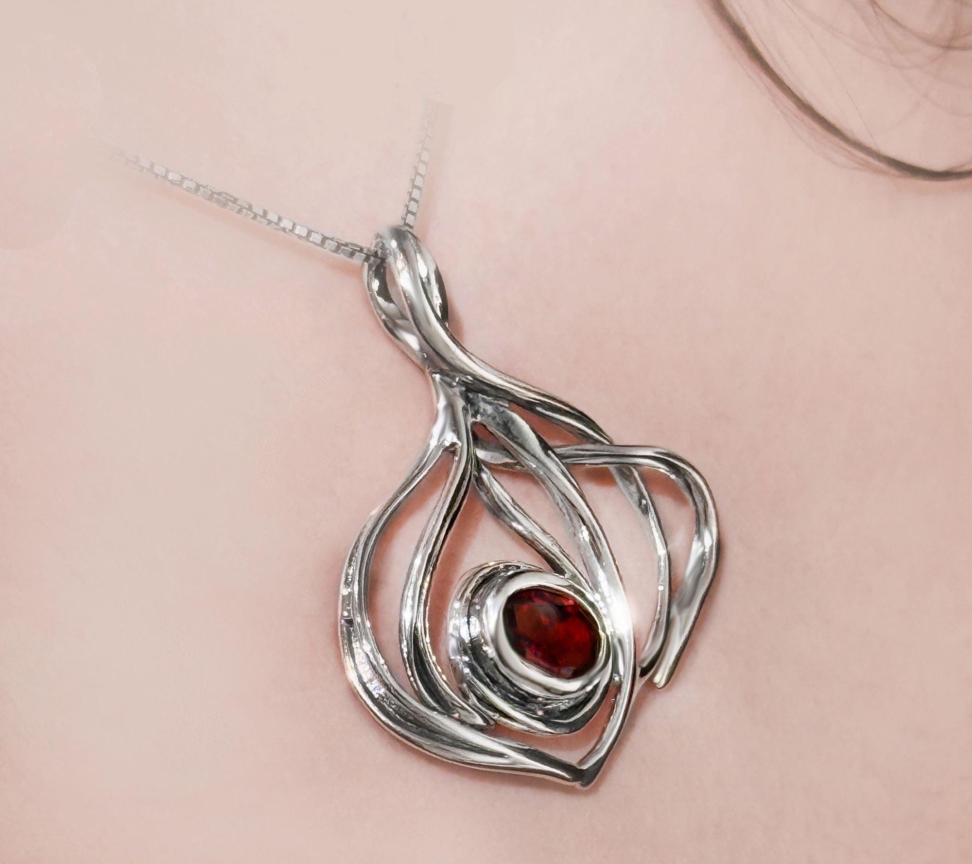 Softly swirling lines of sterling silver seem to dance around a luminous faceted gemstone, giving this pendant a graceful energy that elevates both casual and dressy ensembles. Wear it to add a touch of modern artistry to your day or for those meaningful evenings when every detail matters. From Hagit.