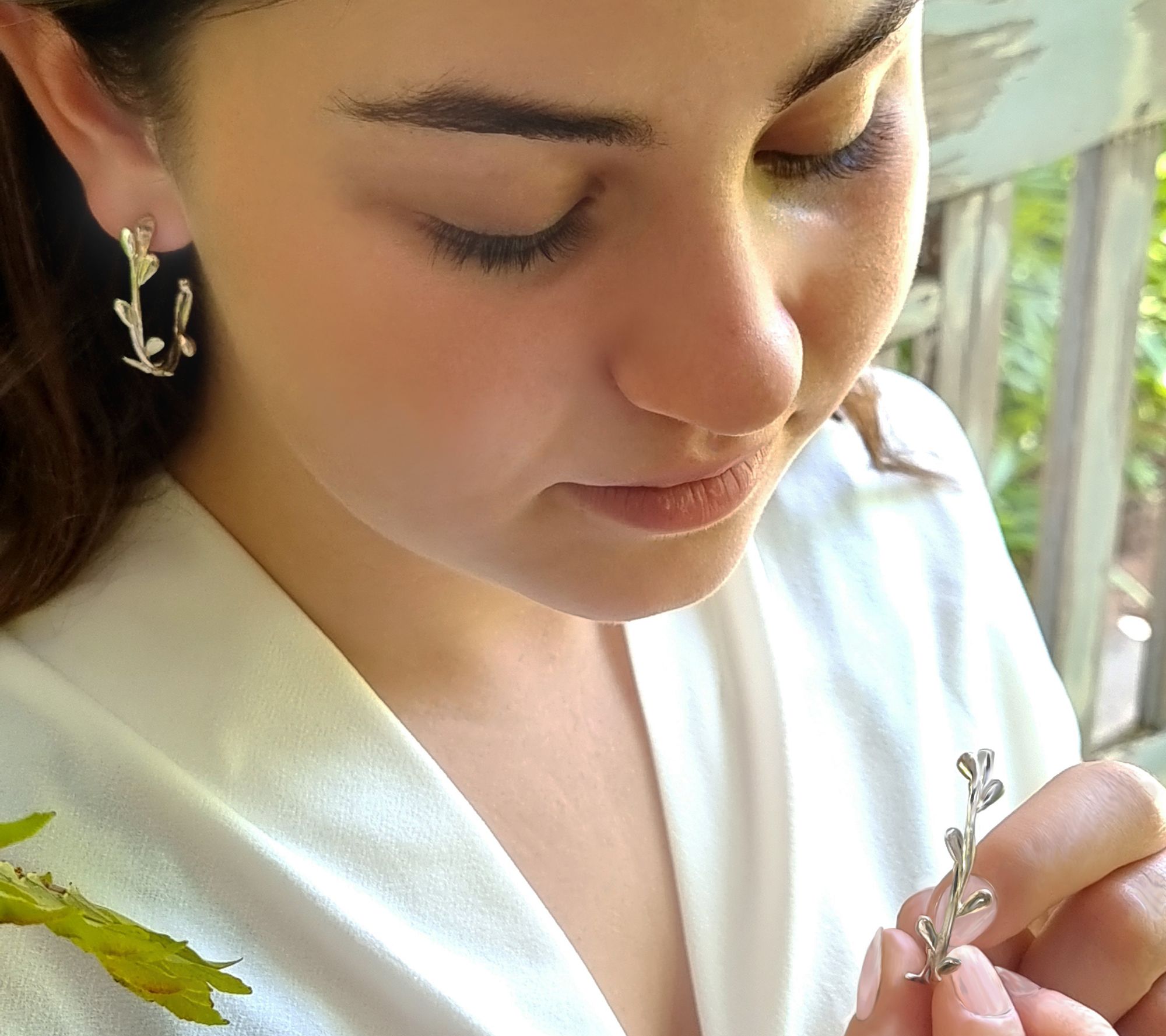 Offering cheerful style that looks fresh from the garden, this pair of half-hoop earrings feature leafy, intertwined stems that bring a touch of natural beauty to your look. From Hagit.