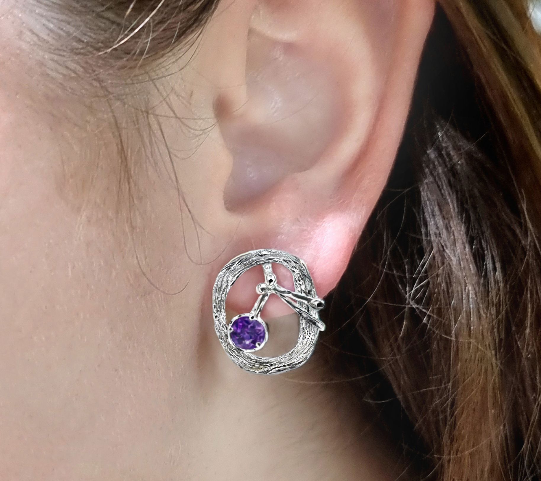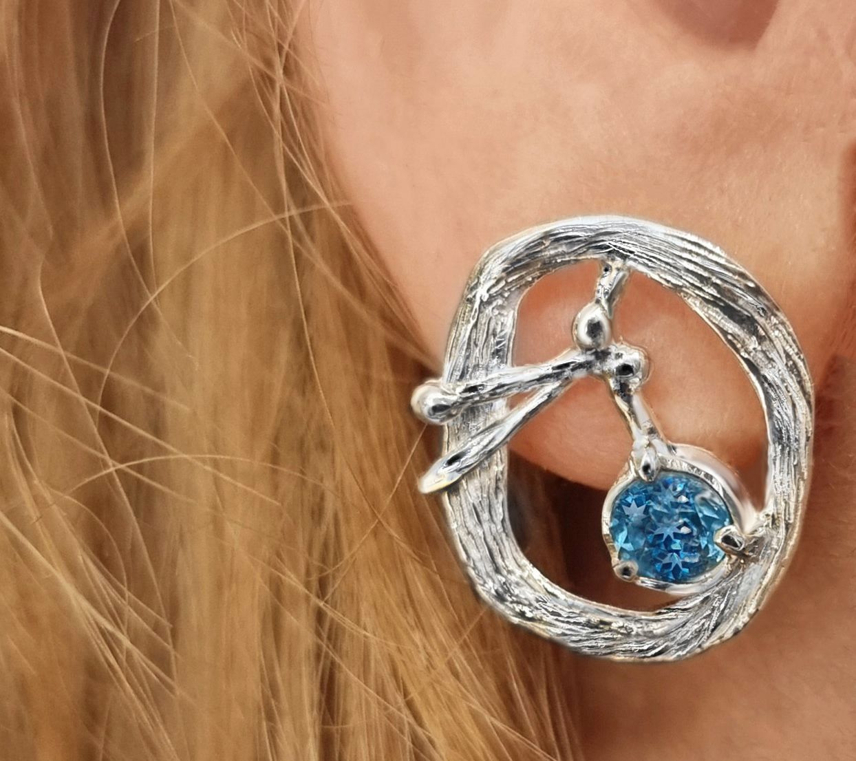 Earthy, chic, and inspired by nature, these free-form olive branch earrings sparkle with the beauty of sterling silver and round-cut gemstones. From Hagit Silver Designs LTD.