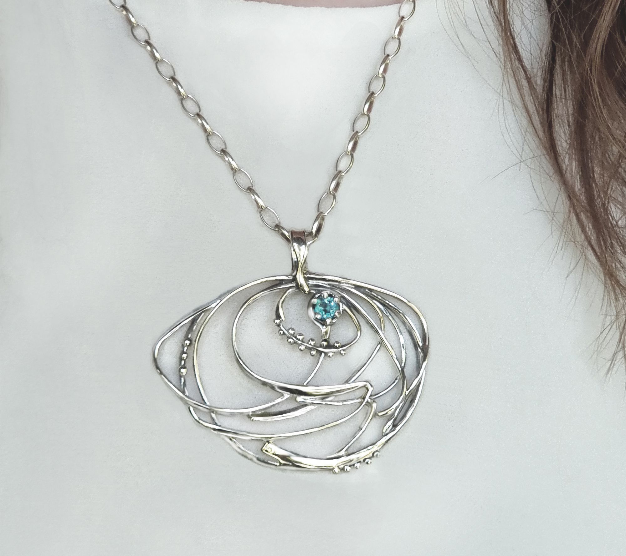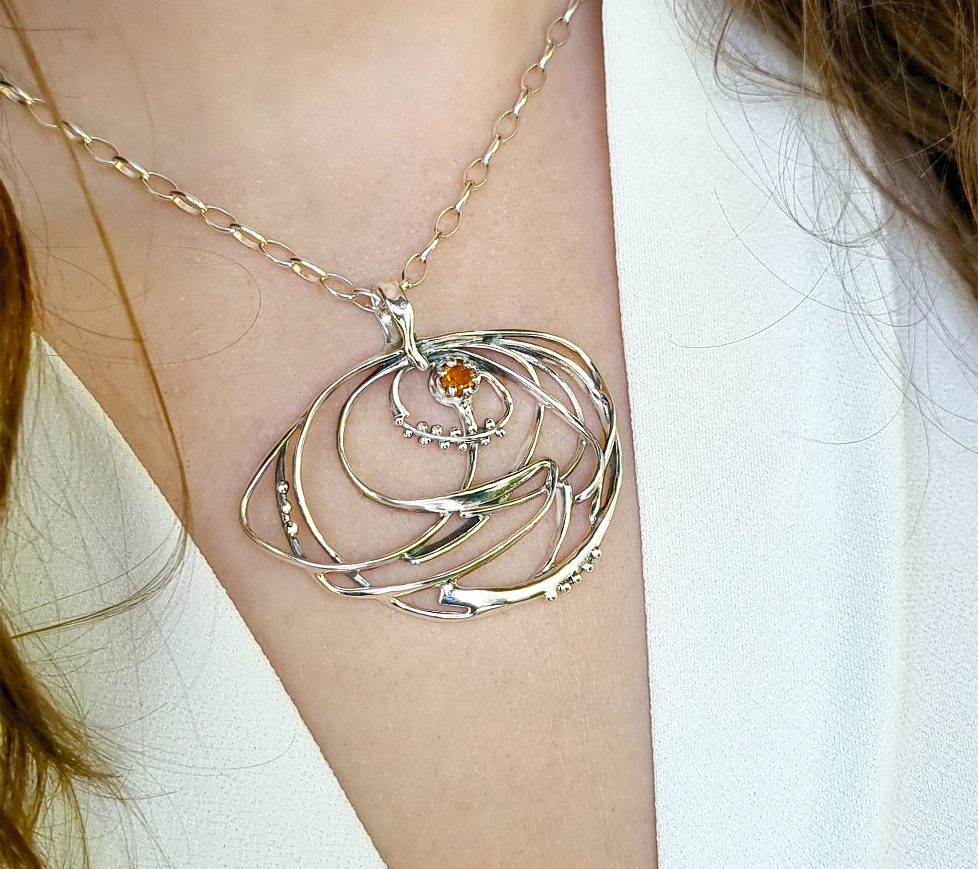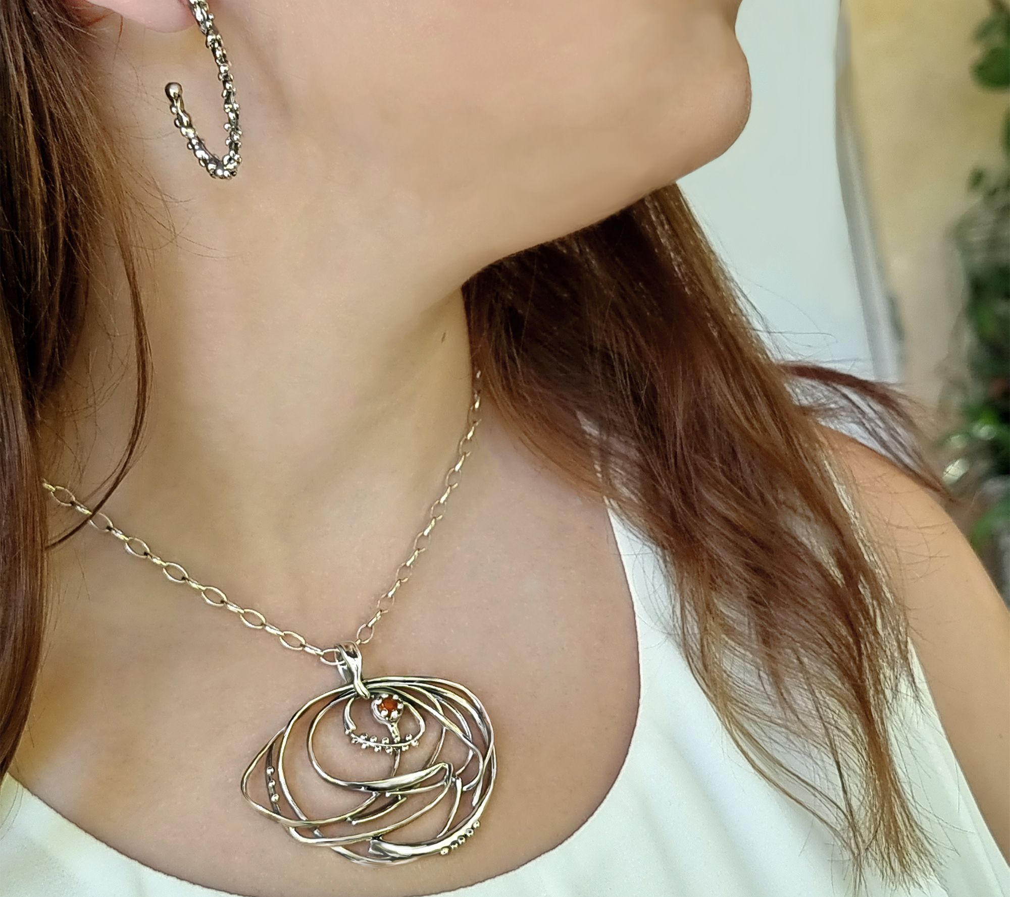 Surround yourself with playful energy by ornamenting your outfit with this freeform whirlpool pendant boasting a textured floral setting that highlights an eye-catching gem. From Hagit Silver Designs LTD.