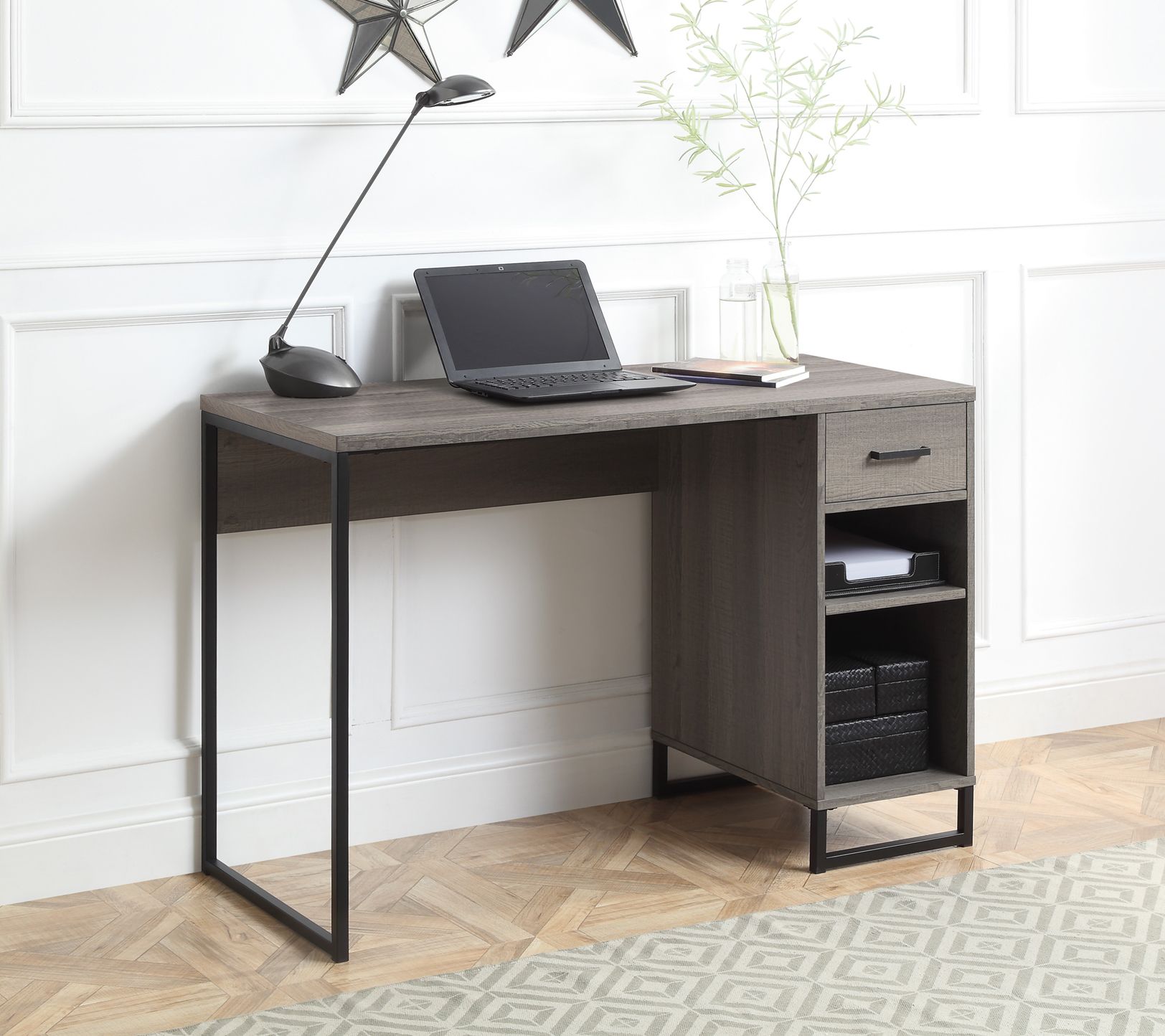 Stylish and functional with an attractive farm oak finish, this computer desk will be the centerpiece in your home office. From OSP Home Furnishings.