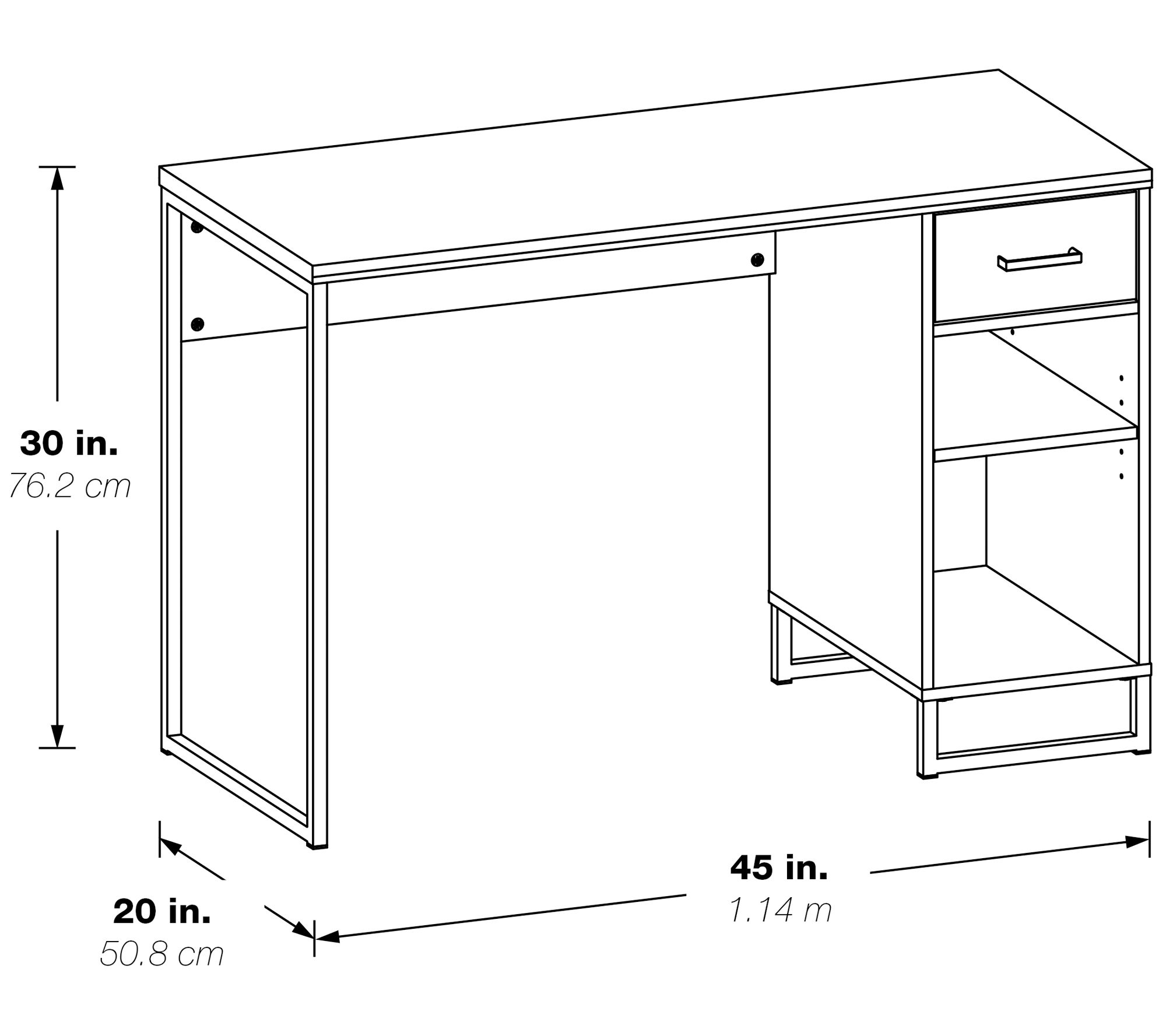• Measures 45"W x 19.5"D x 30"H
