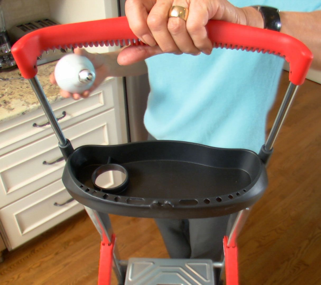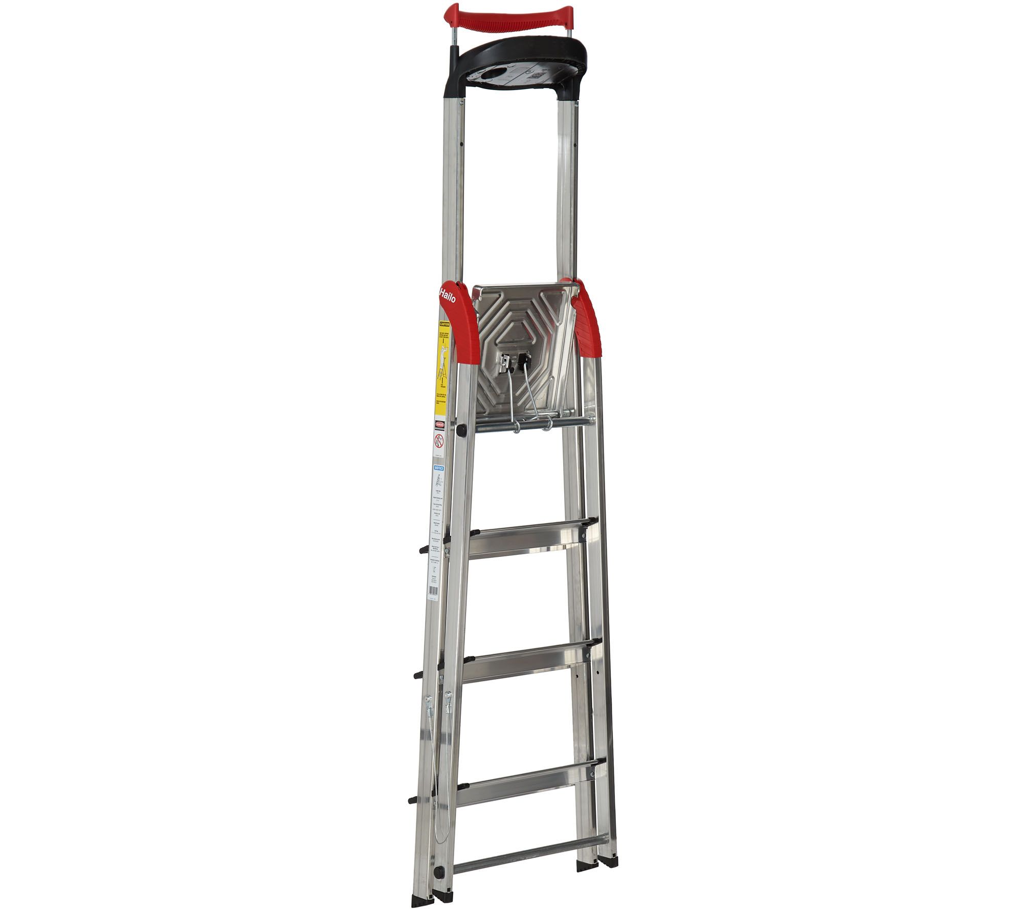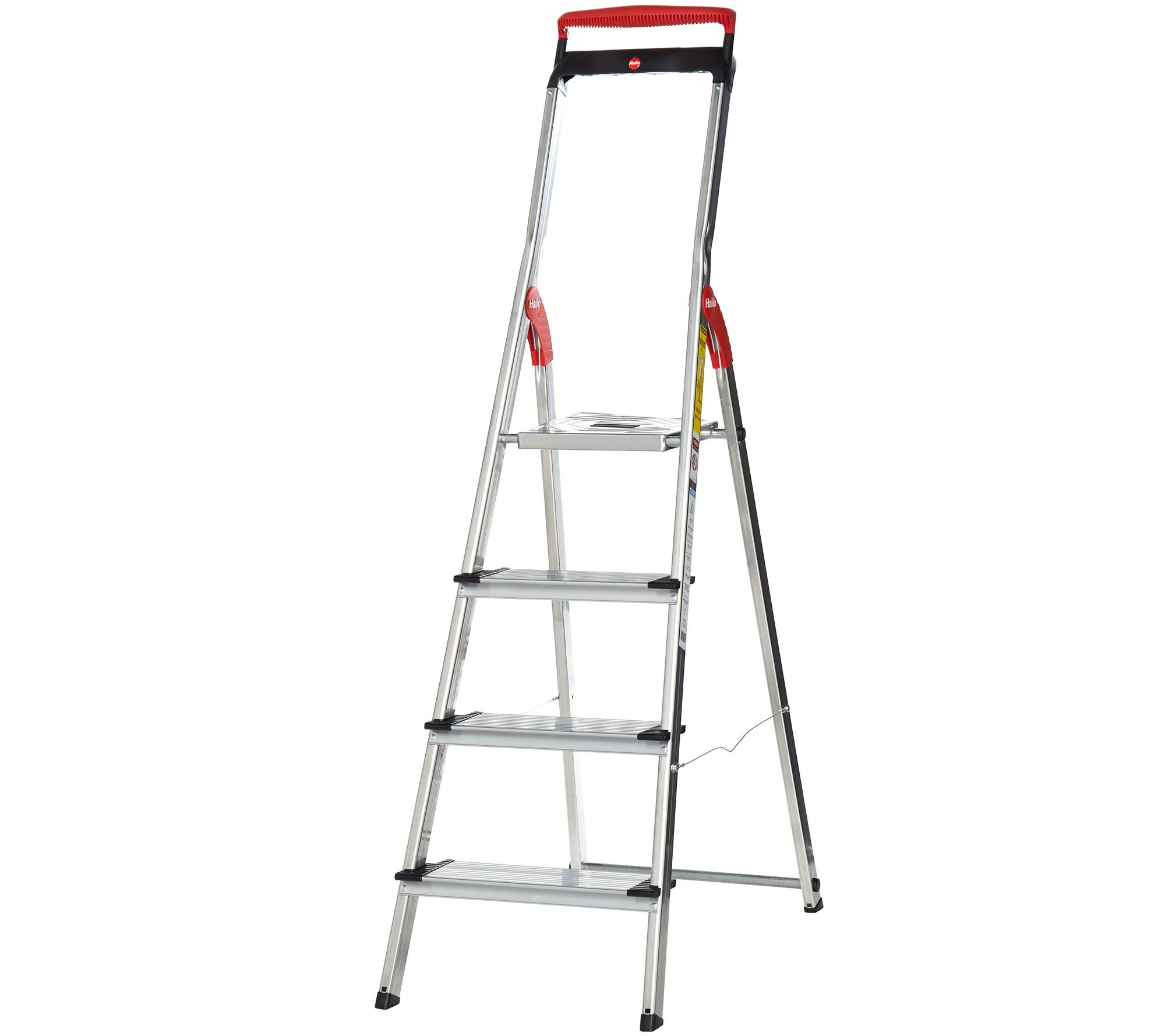 When home project challenges seem out of reach, rise above them using this sturdy step ladder. A multifunction tray lets you keep tools close at hand, while nonslip grooved treads and an extendable handrail offer greater stability while working. From Hailo.