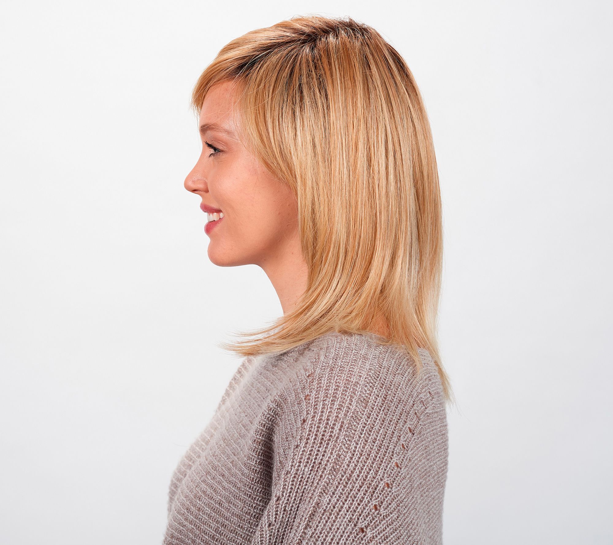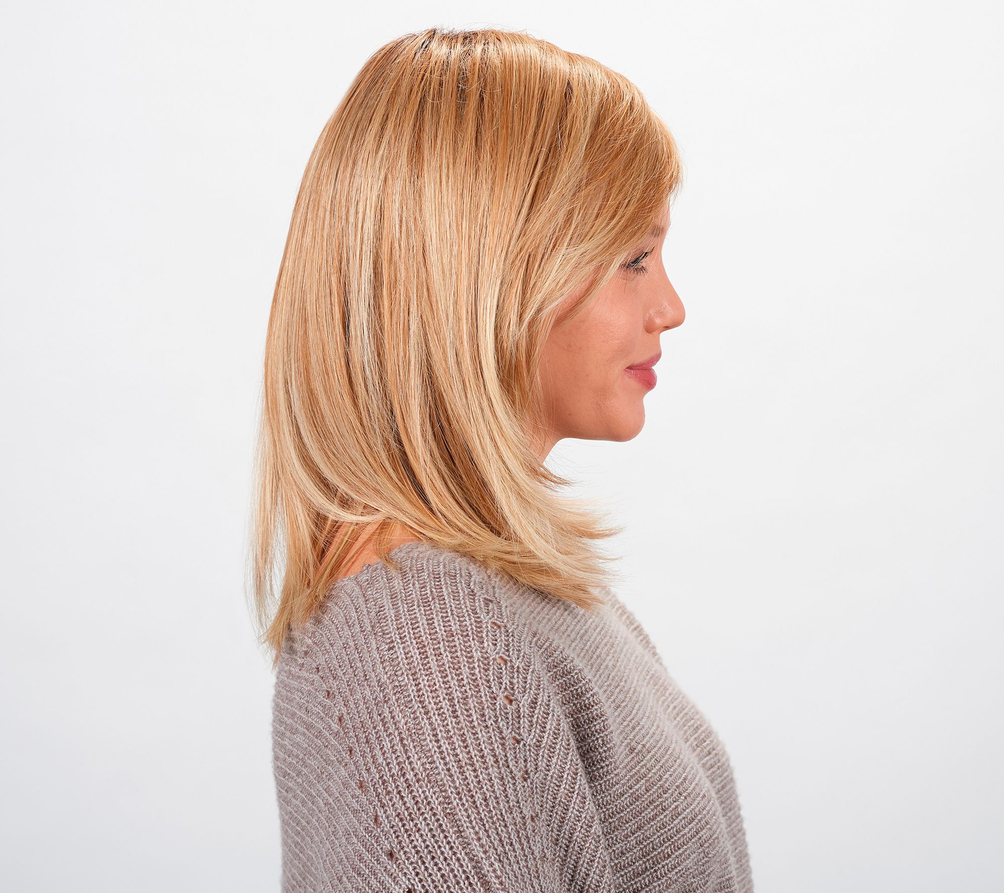 The Hairdo Romantic Layers wig is a layered, long bob inspired by QVC® Host Mary Beth Roe. Soft, texturized, side-swept bangs at the front are flirty and feminine. Subtle layering at the ends give the style a modern edge while retaining a classic shape and natural-looking movement.