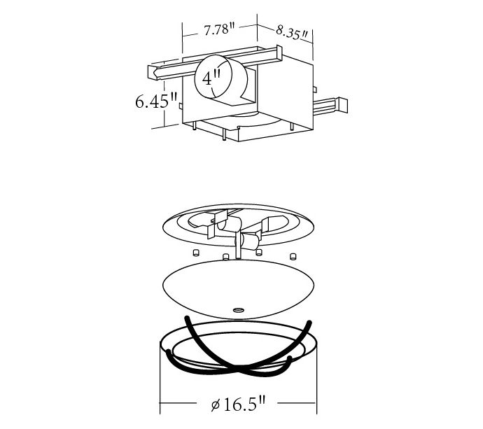 • Includes light kit, motor housing, loose parts bag, mounting rails, and instructions