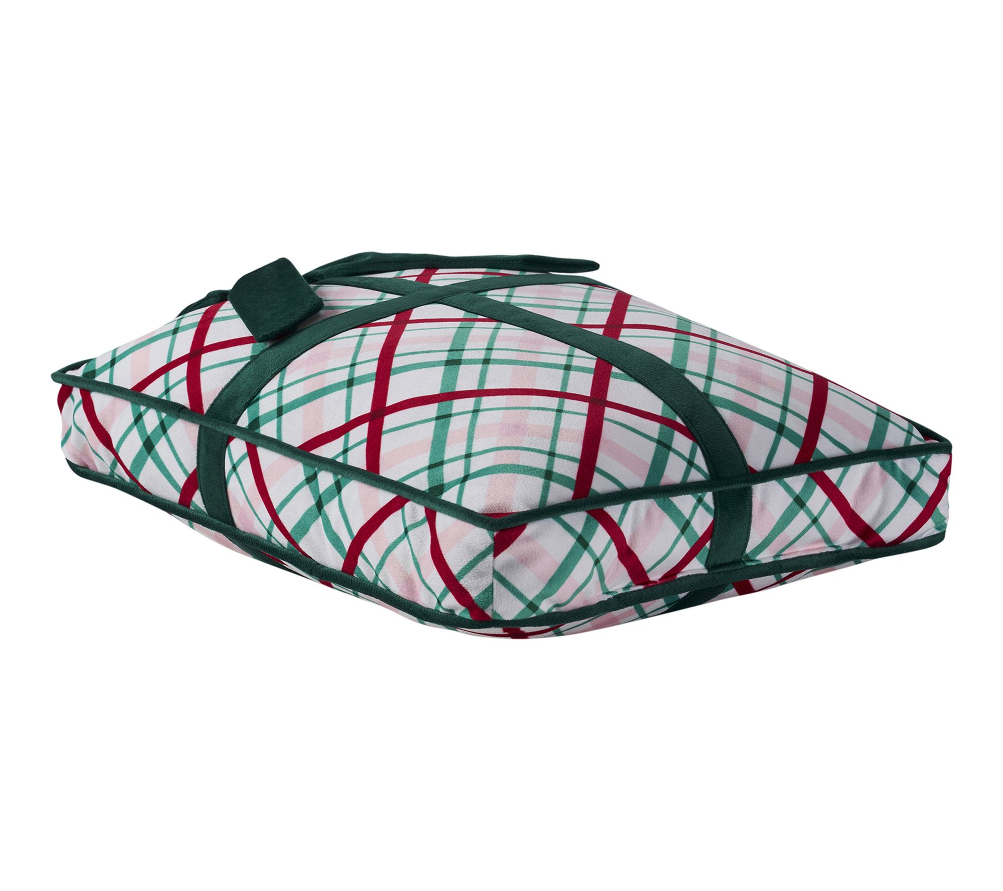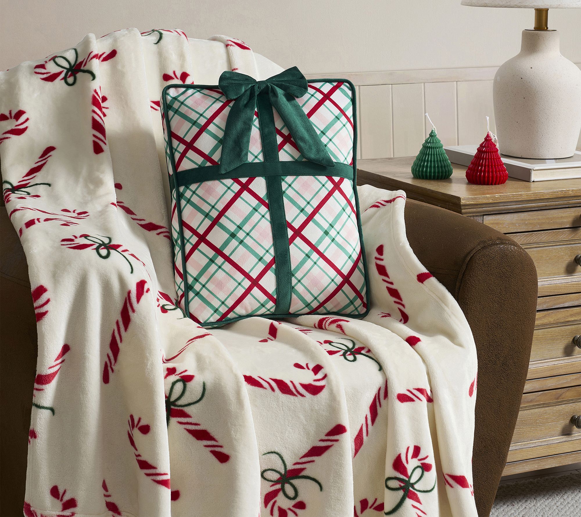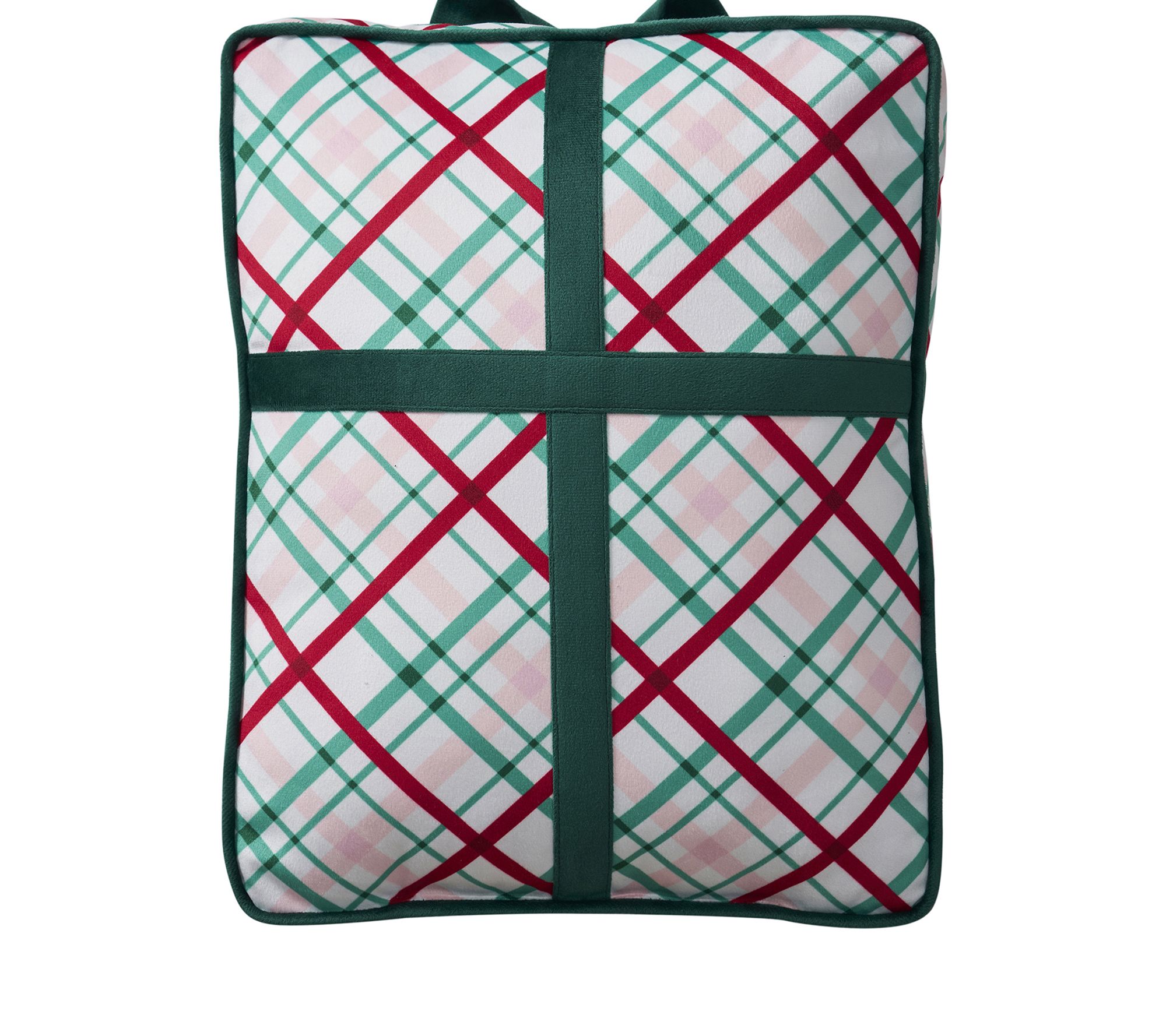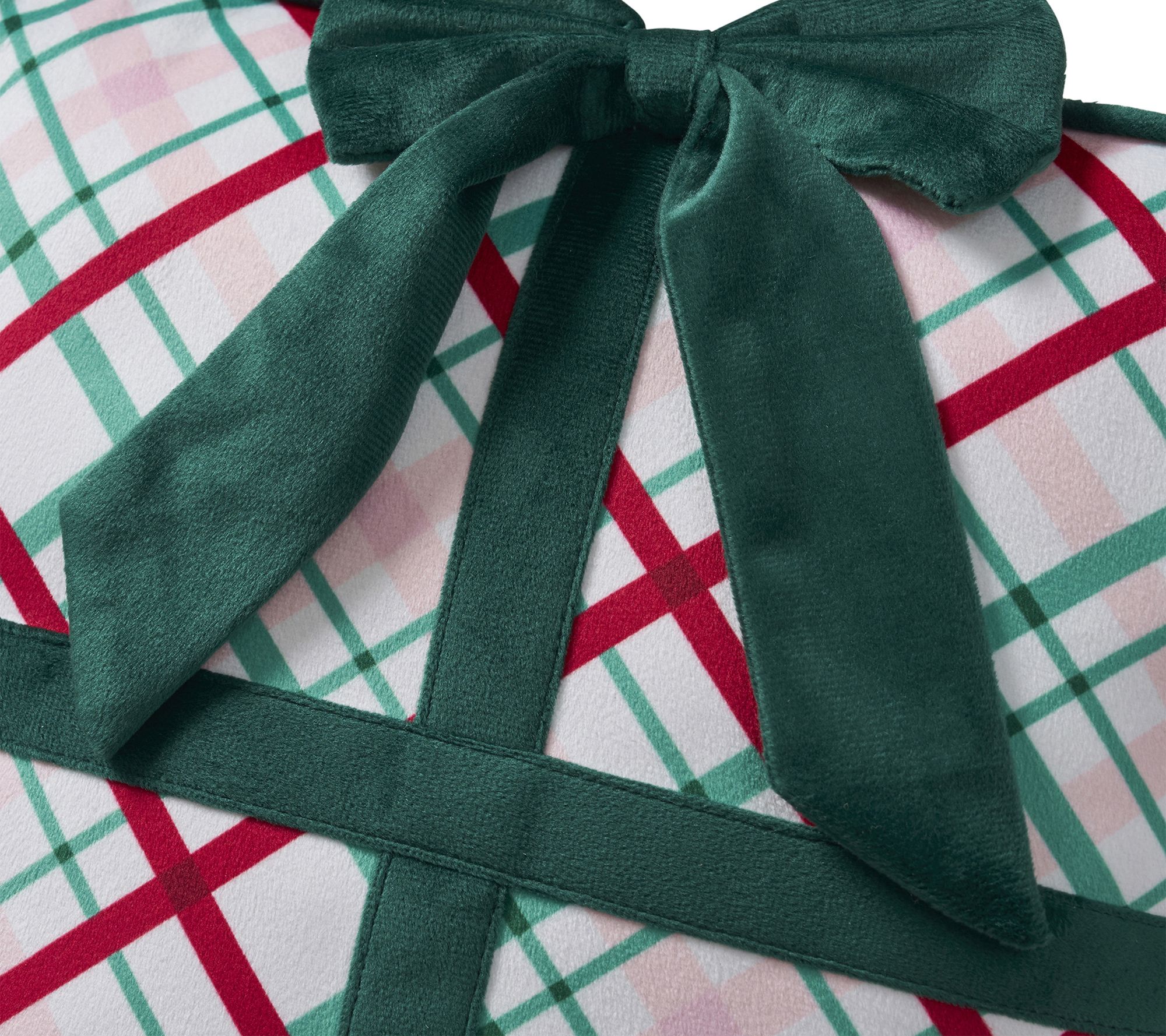 • Holiday decorative pillow with gift-inspired plaid design
