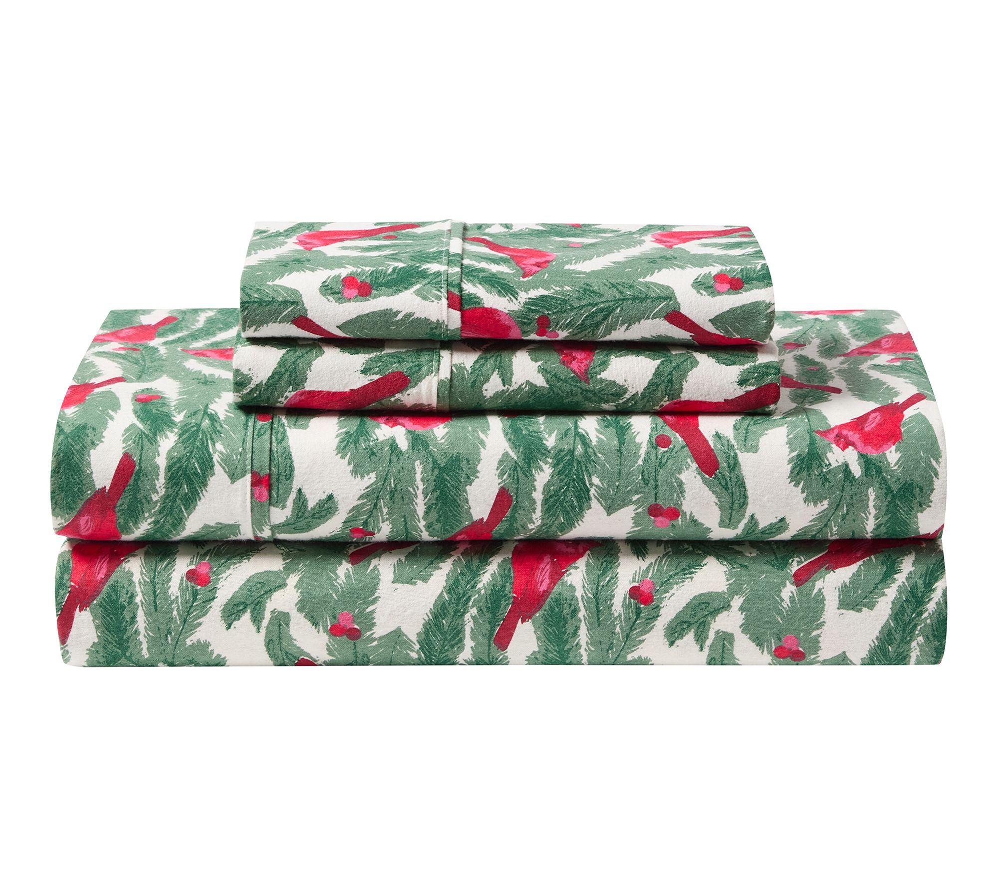 Make every night feel festive and inviting with this brushed cotton flannel sheet set, featuring playful cardinal and tree branch prints that bring cozy holiday warmth to your bedroom. Softly brushed for extra comfort, these sheets are ideal for snuggling in during chilly evenings -- or just for adding a touch of cheer to your everyday routine. From Hallmark.