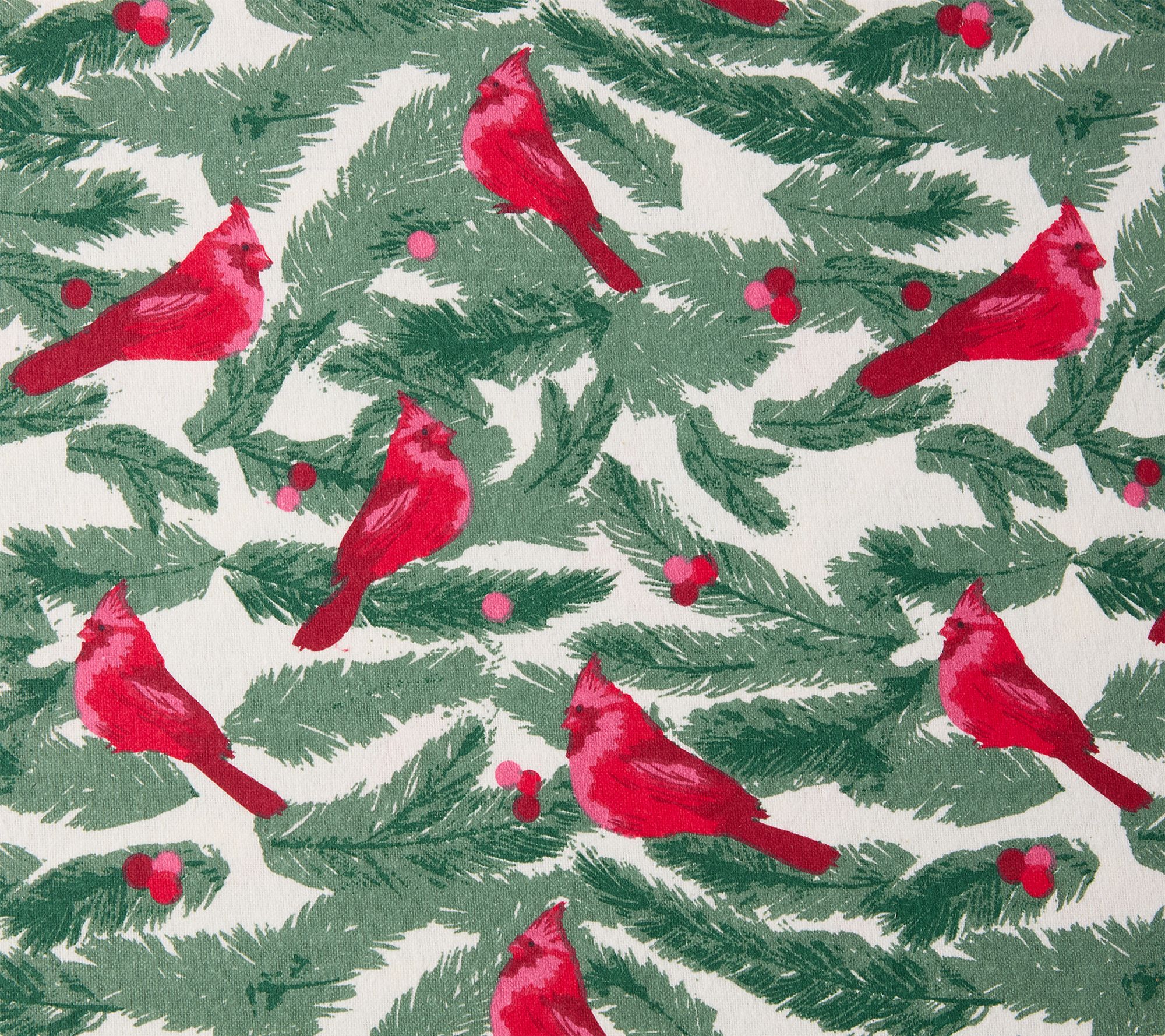 • Holiday flannel design features cardinals and tree branches