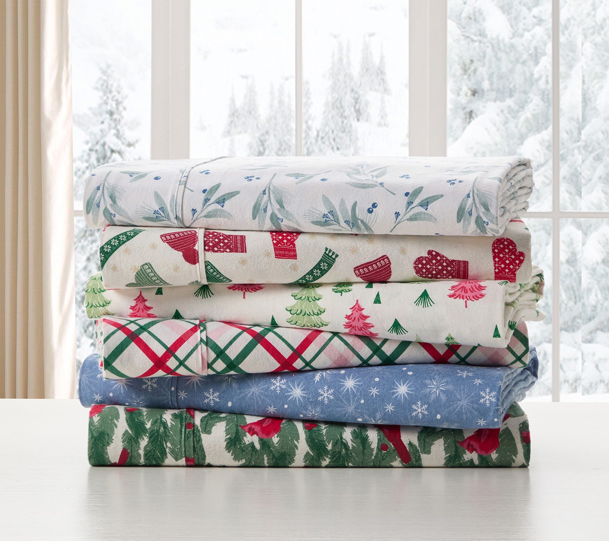 Infuse your bedroom with festive charm and ultimate comfort with this brushed cotton flannel sheet set, adorned with playful cardinals and tree branch prints. Crafted for a cozy holiday season or a delightful touch year-round, the extra-soft texture invites you to snuggle up on chilly nights while the deep pocket fitted sheet keeps everything in place. From Hallmark.