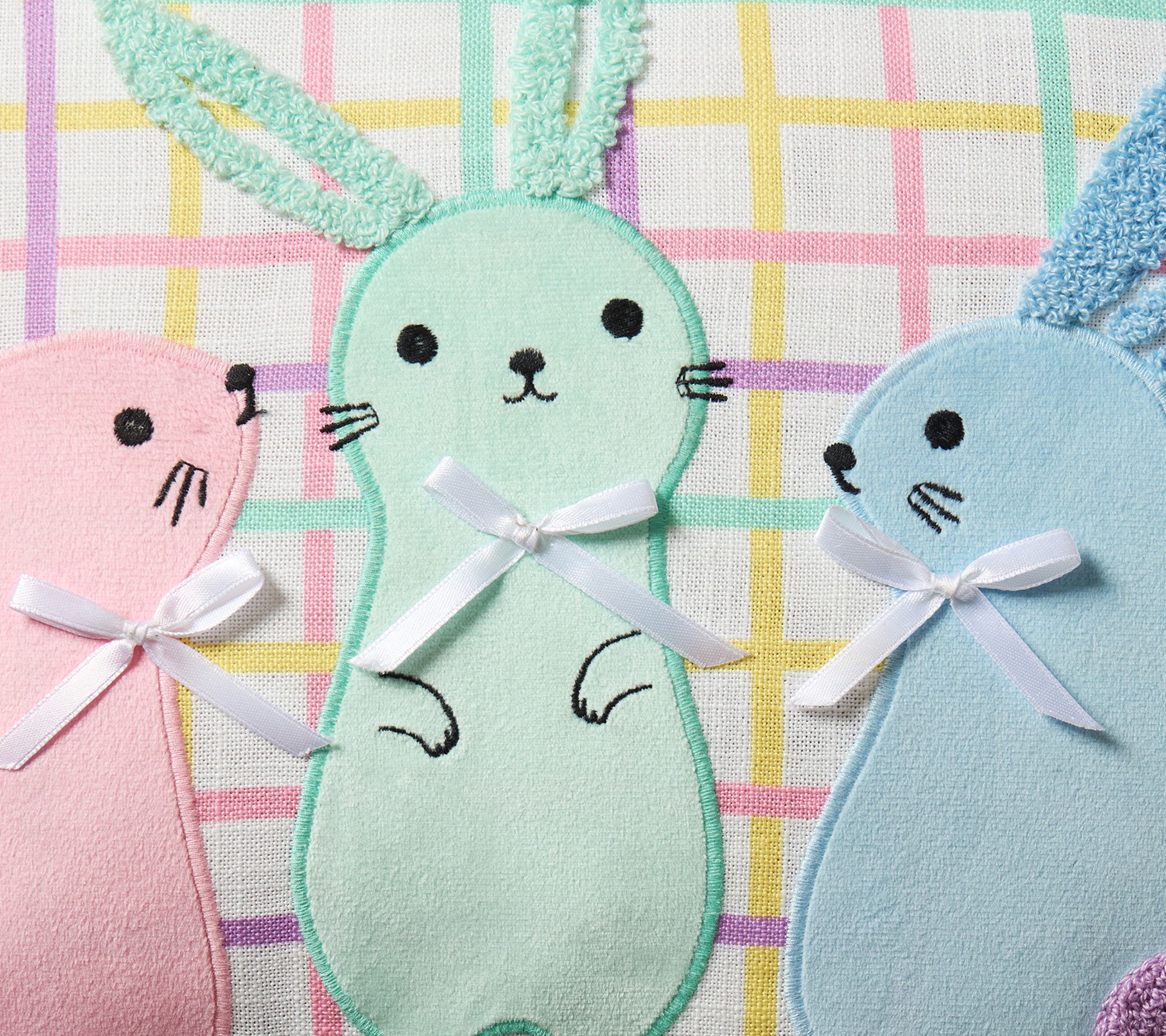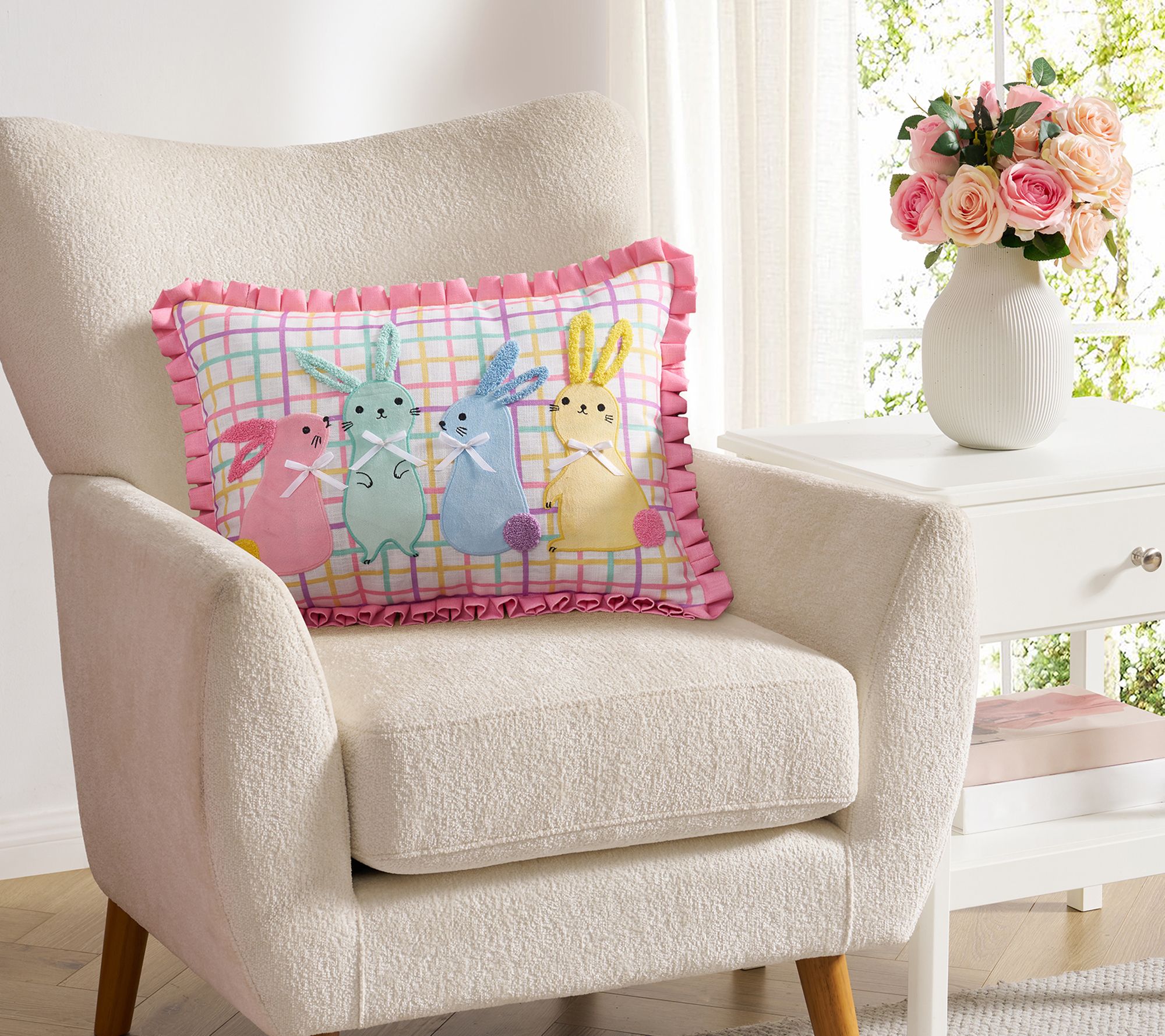 Add a whimsical touch to your home with this reversible decorative pillow, featuring charming Easter bunny designs and playful details like textured velvet appliques, embroidery, and lace. Delight in the versatility of spring decor -- whether placed on a bed, sofa, or favorite chair, it's an easy way to refresh your space for the season. From Hallmark.