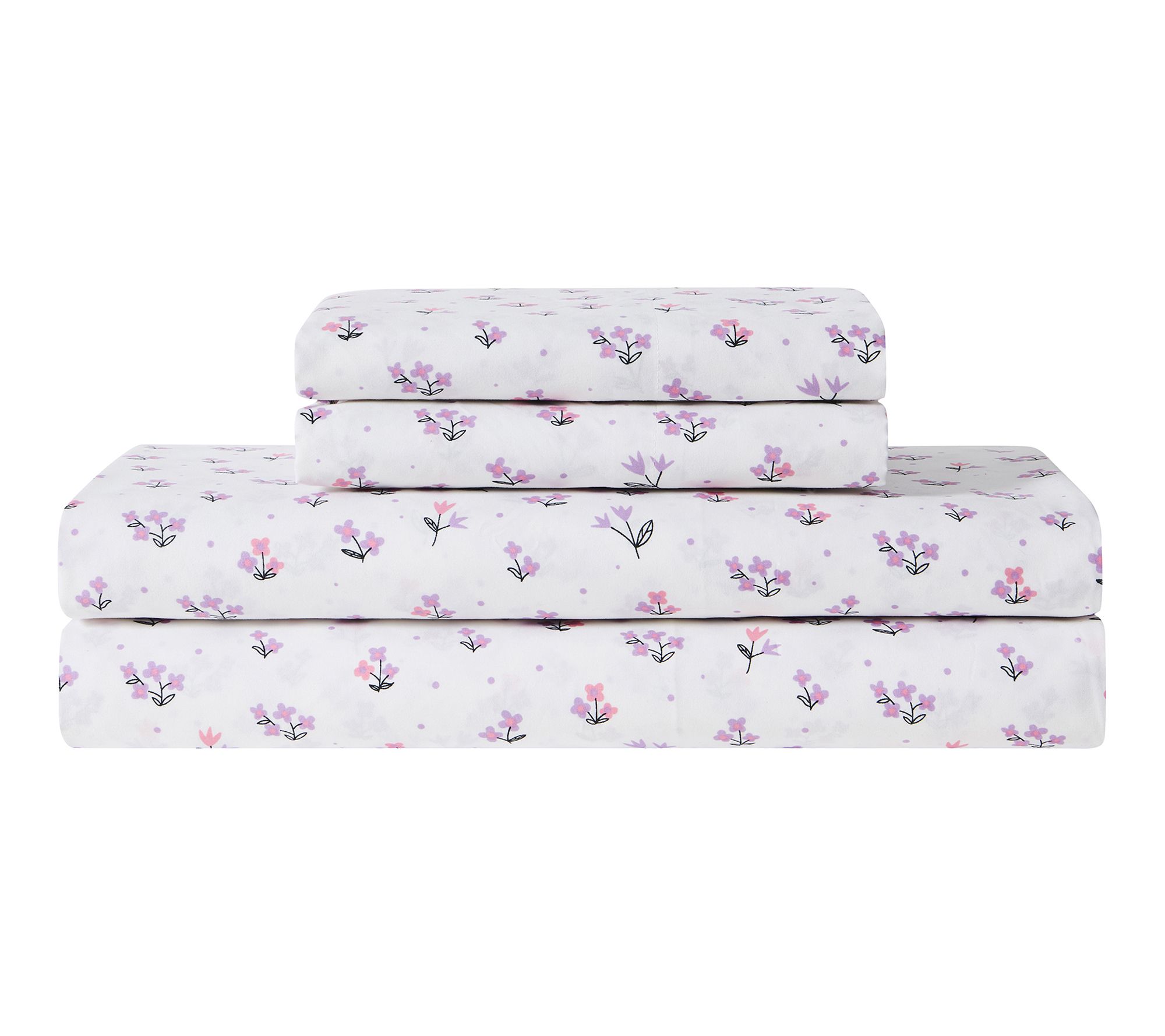 • Includes flat sheet, fitted sheet, and two pillowcases