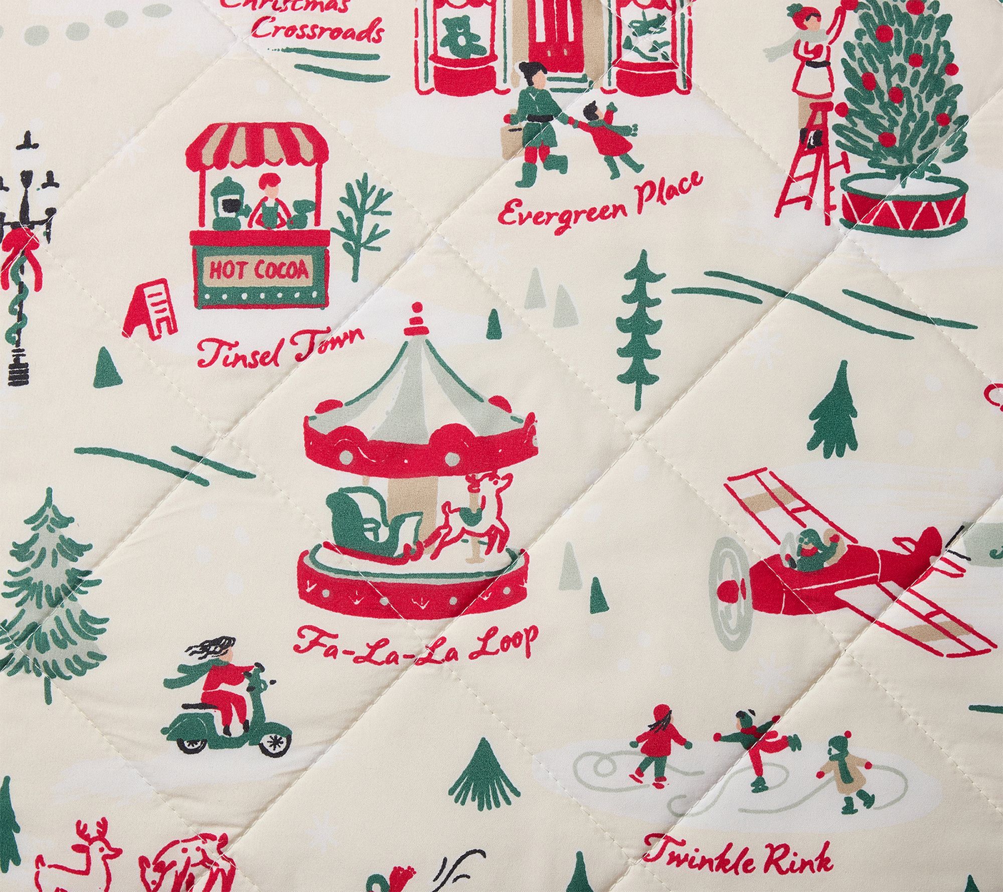 • Reversible design with whimsical village map and snowflake prints