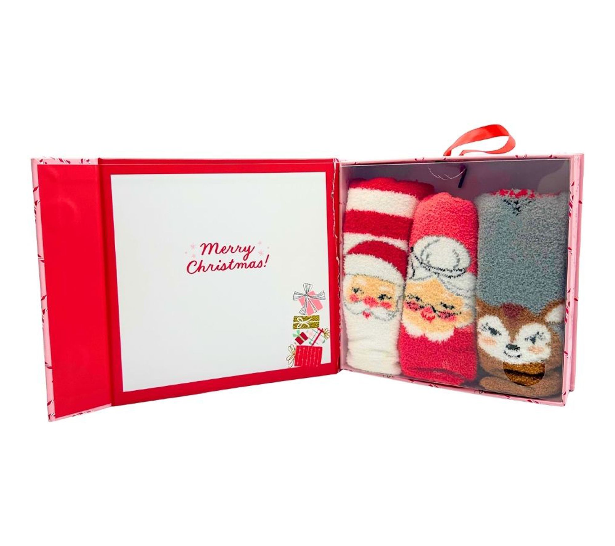 • Includes three pairs of Christmas cozy crew socks in greeting card box