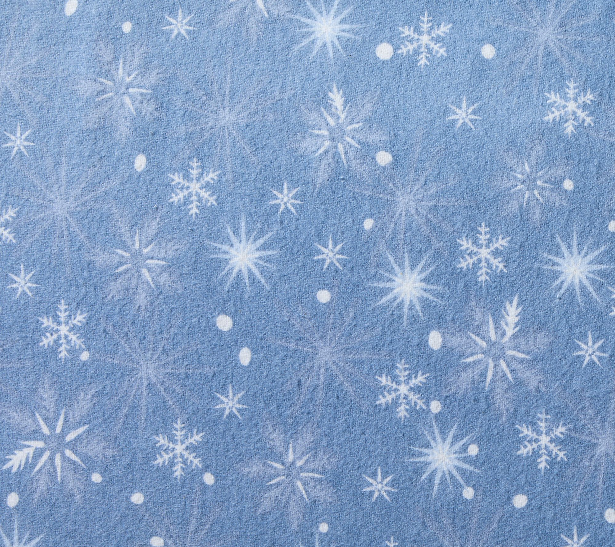 Holiday flannel sheet set features a serene blue and white snowflake theme