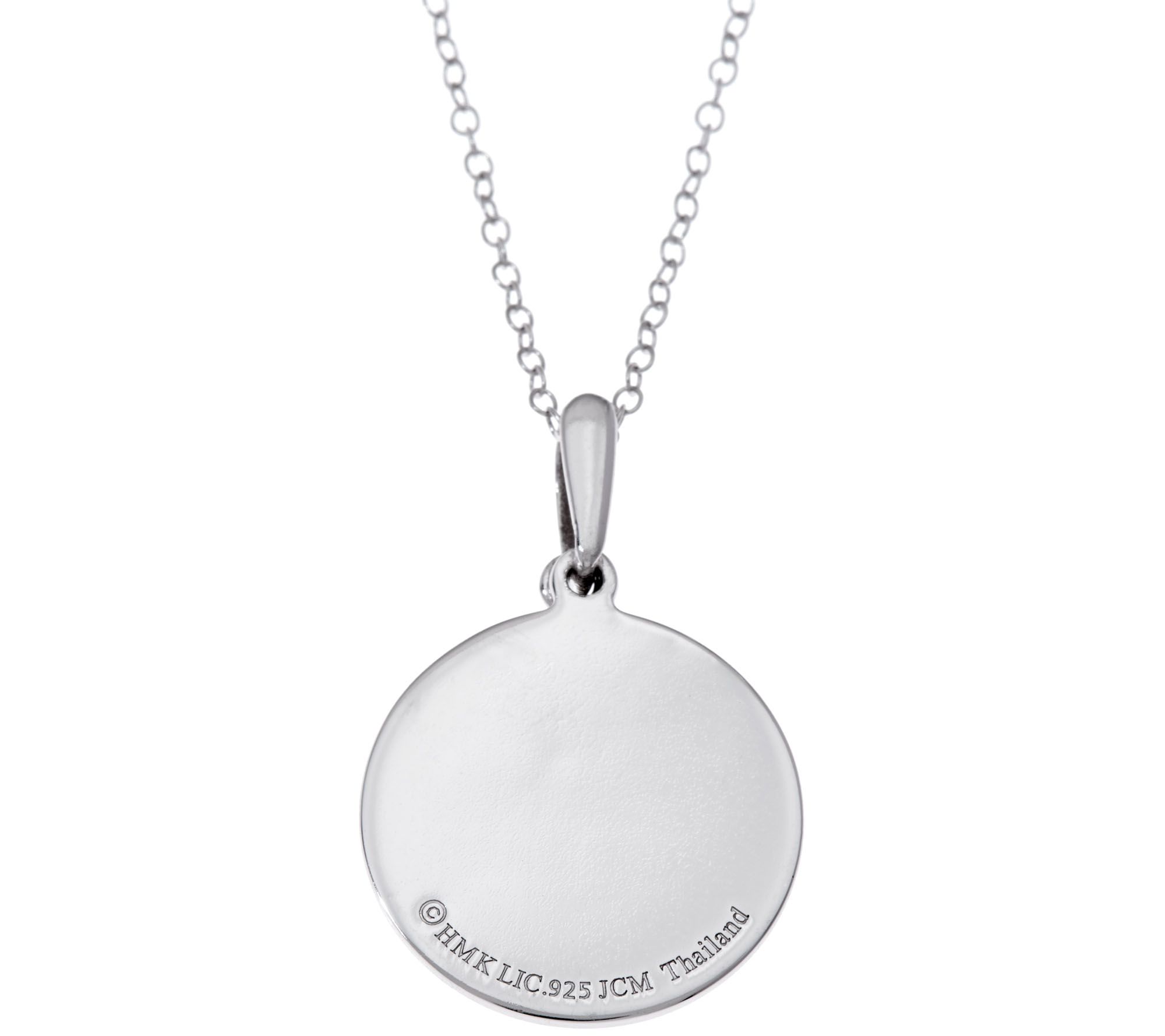 • Disc pendant with black epoxy enamel engraved inspirational message; goldtone motif lays over the message; polished finish
