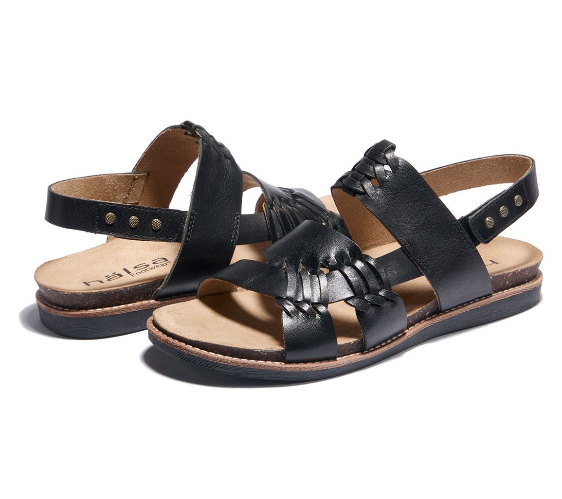 Step into style: Halsa Bella - the ultimate slingback leather walking sandal! Embrace trendiness with a soft leather upper and effortless open toe woven design. Experience all-day comfort with a padded cork footbed and convenient adjustable slingback. Move freely with a flexible rubber outsole and enjoy the luxury of our deeply cushioned insole. From Halsa.