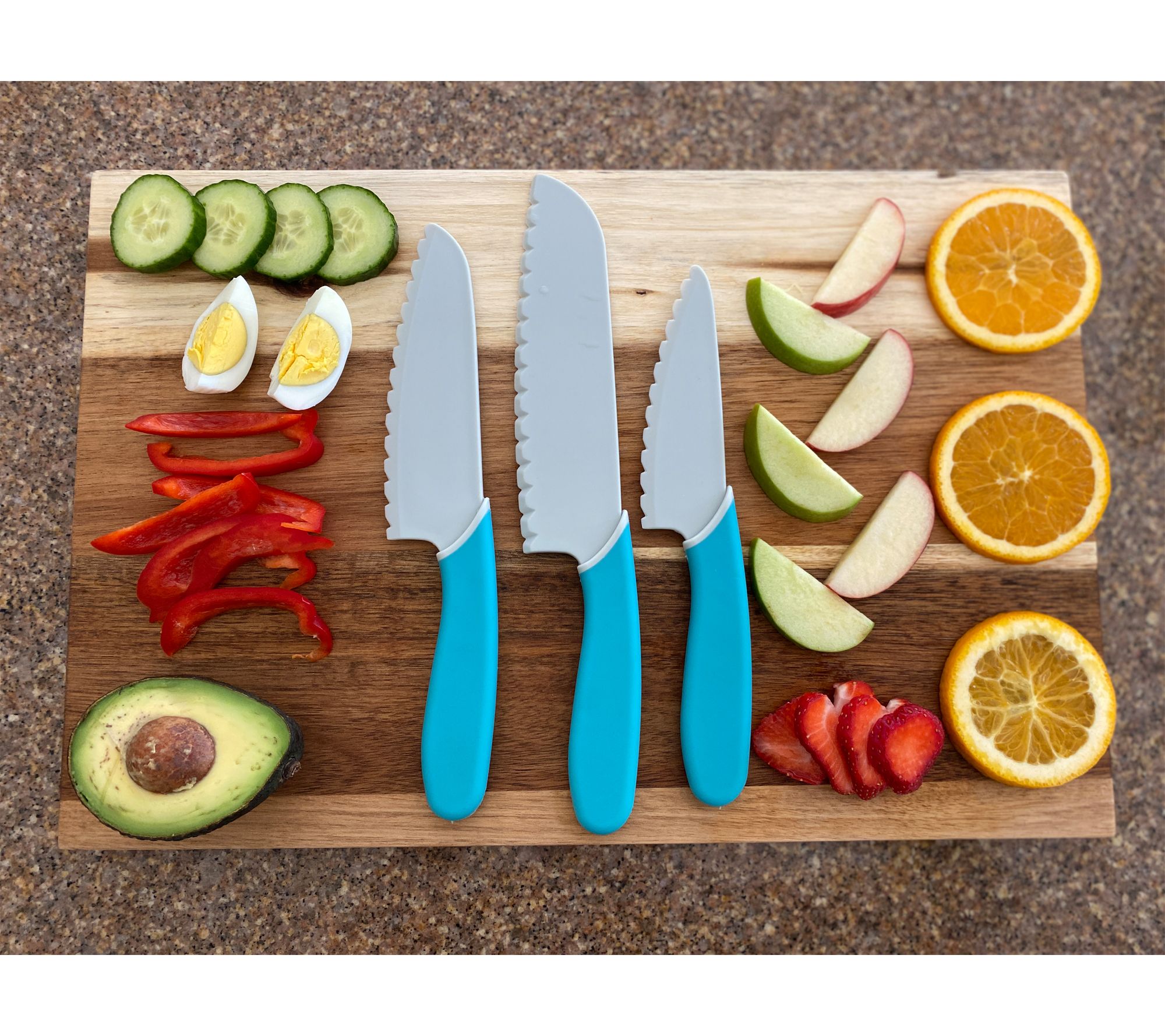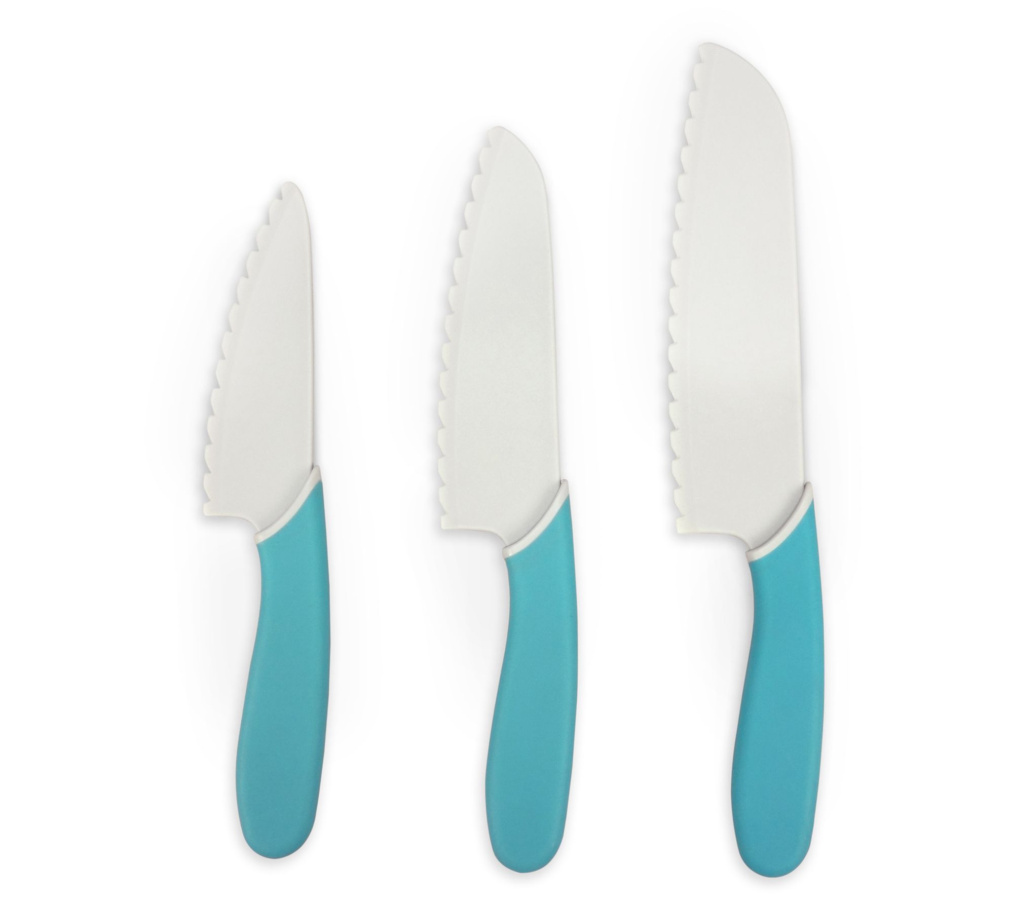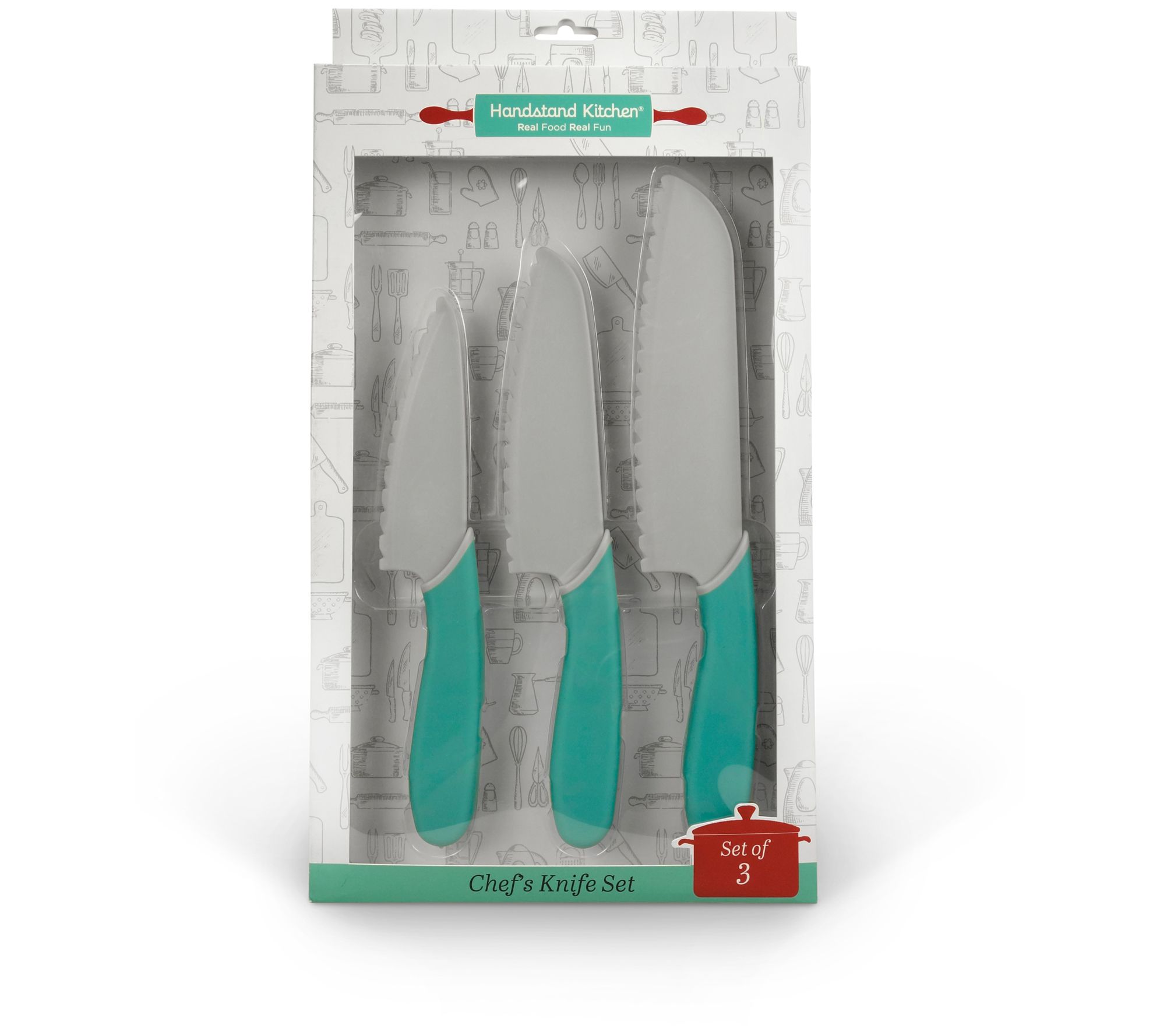 Introduce your young ones to the cool world of culinary arts with this set of kid-safe knives, perfectly sized for every cutting need. Watch as they hone skills in chopping veggies, cutting fruit, slicing bread and more. From Handstand Kids.