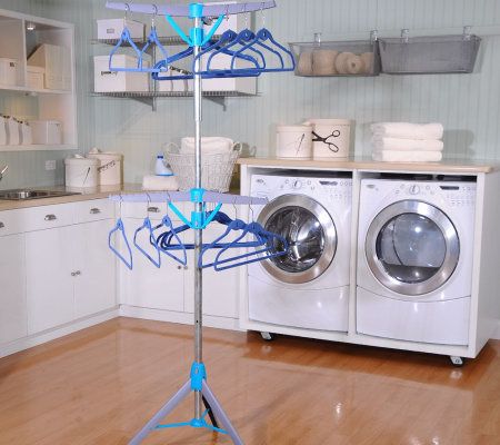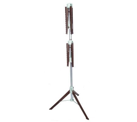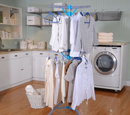 Dry and store your favorite clothes--even when space is at a premium--with the Hangaway drying rack. The two tiers provide double the room when you need it, while the tripod design collapses to save space when it's not in use. The arms are strategically positioned over the legs to help prevent tipping.